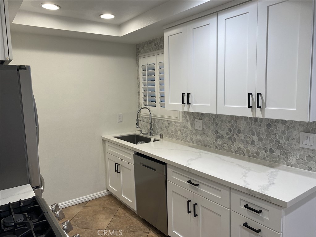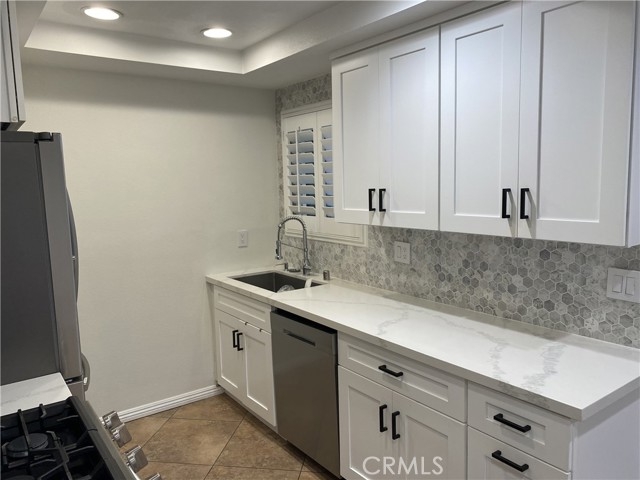 Beautiful bottom level unit with upgraded kitchen! Located in the heart of Tustin in a well maintained, gated community. Within walking distance to Trader Joe's and many restaurants. Key features include: Brand new kitchen remodel with refrigerator included in sale, gas fire place in living room, plantation shutters on all windows, walk in closet in master, inside washer and dryer hook ups (stackable units only), one assigned parking with plenty of guest spots, and an enclosed private patio with storage closet. The Community also includes a swimming pool and two spas.