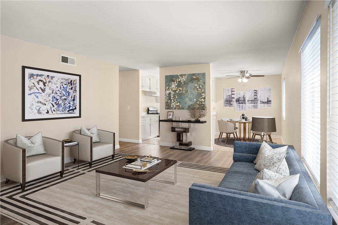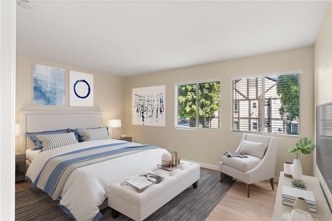 Williamshire- Welcome to this beautiful Tustin community ideally located near the 5 and 55 freeways, highly rated schools, popular shopping/dining, and attractions. This quiet community offers amenities including a pool, fitness center, BBQ area, detached garage parking, and community laundry facilities. The charming upper unit is a spacious 2 bed, 2 bath home with a gas fireplace, low maintenance laminate and tile floors, central heat and air, newly painted interior, mirrored wardrobe doors, refreshed kitchen and bathrooms, and well-sized bedrooms! This turnkey gem will not last long!!