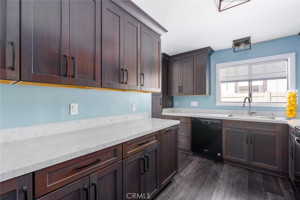 Welcome to this beautifully remodeled Downstairs Condo in the Williamshire ! This end unit is one of the largest model in the community with over 1,600 sq ft and sits on a very quiet interior location. Hard to find a unit this size, in this condition , at this price in all of Orange County. This downstairs unit has 3 large bedroom and 2 full bathrooms has private laundry and newer AC. The large living room has plank wood like floors, newer windows , a cozy fireplace and offers plenty of room to entertain. Next you'll find the dining area with sliding doors to the patio and a beautifully upgraded kitchen with soft close dark cabinets and stunning white/gray quartz counter tops. The extra large master bedroom has views of the greenbelt and comes with a walk-in closet along with a beautifully upgraded master bathroom, 2 additional good size bedrooms and hallway bathroom complete the interior. The condo also includes a lovely patio for entertaining friends and family and allows easy access to your own private 2 car garage! Williamshire community boasts some of the best landscaping and resort style pool and is surrounded by a beautiful patio. There is a full gym, clubhouse and a laundry room. Water and trash are included in the HOA. Book your showing ...This won't last! LOOK FOR UNIT J