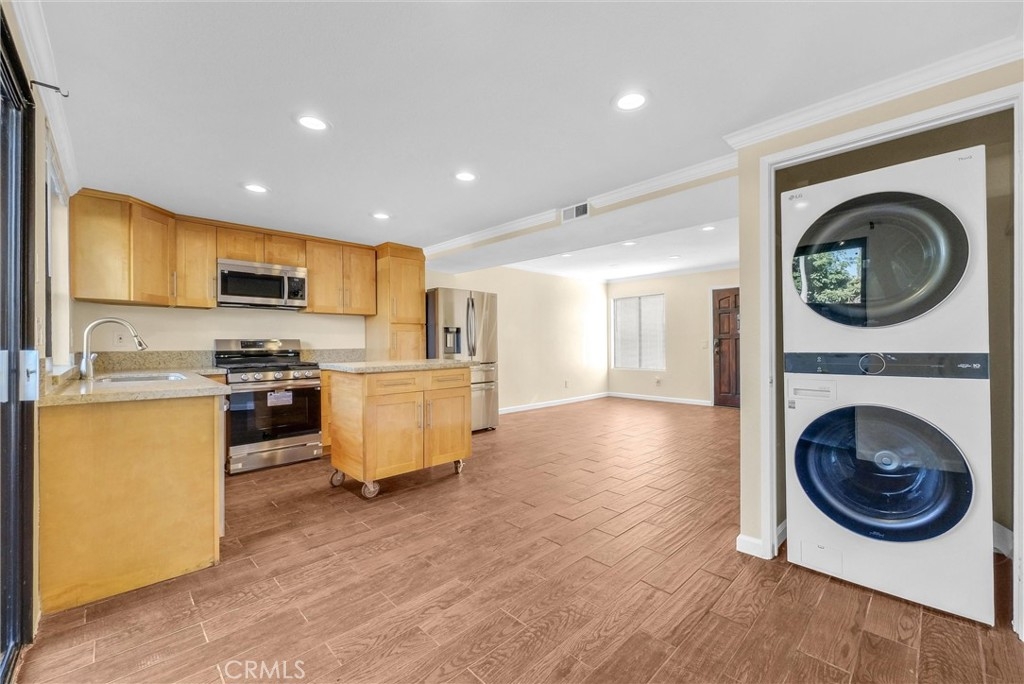Welcome Home! This charming 2-bedroom, 2.5-bath townhome in the heart of Tustin is ready to steal your heart. Featuring an open-concept living space adorned with porcelain tile that looks like wood (but won't splinter your toes), this home boasts a spacious, remodeled kitchen with shiny new wood shaker cabinets, granite countertops, and all the essential appliances—including a 5-burner gas range, dishwasher, refrigerator, and an LG stackable washer and dryer (because who doesn’t love multitasking?). Upstairs, you’ll find two ensuite bedrooms, each with its own private bathroom—perfect for avoiding those "who left the towel on the floor" arguments. The property includes a detached one-car garage connected by a patio, plus an additional assigned parking spot—because parking wars are so last season. Nestled in a cozy community of just 18 units, residents enjoy a gated pool and spa—perfect for those sunny California days. Plus, you’re just a hop, skip, and a jump away from Tustin Marketplace, with shops and restaurants galore. Easy access to the 5 and 55 freeways makes your commute a breeze. And as a bonus, it's uniquely classified as a single-family home, so FHA and VA financing are a go! Your dream home awaits—don’t let it slip away!