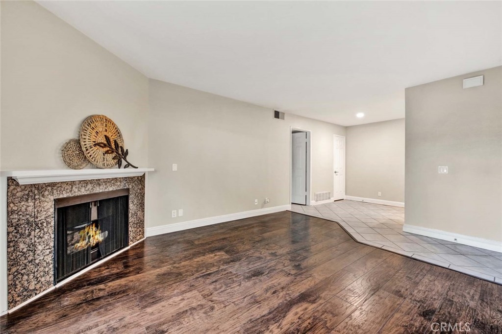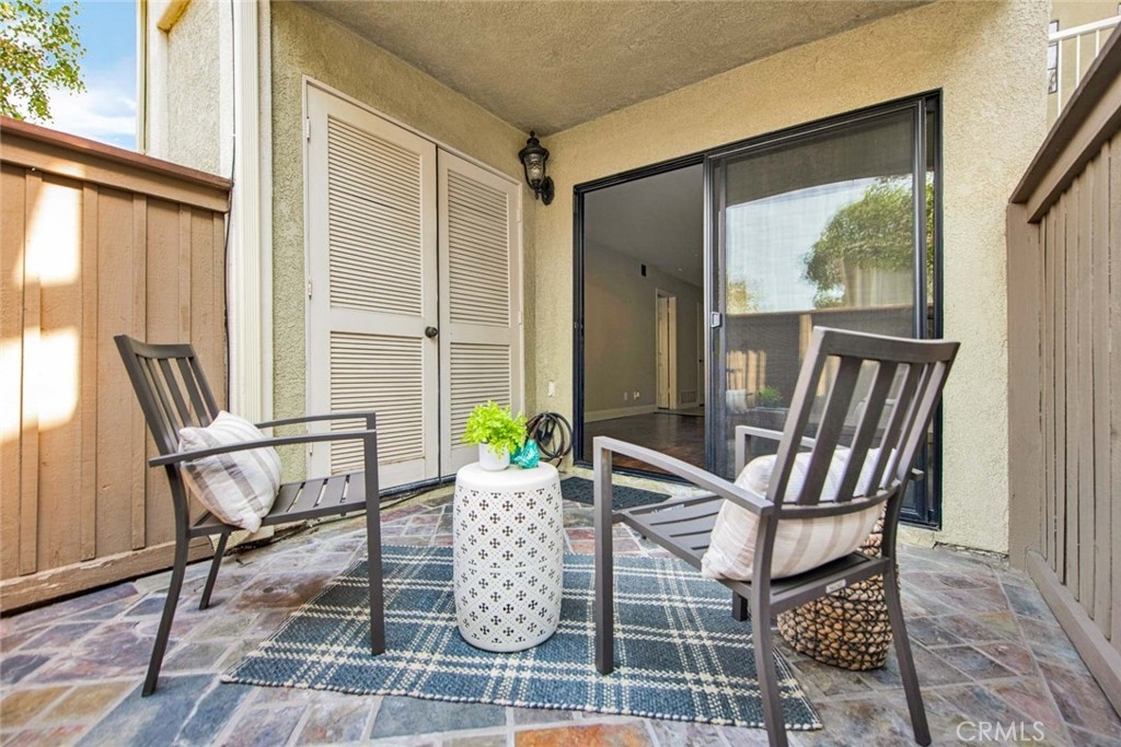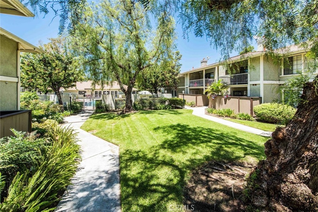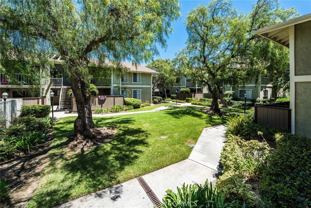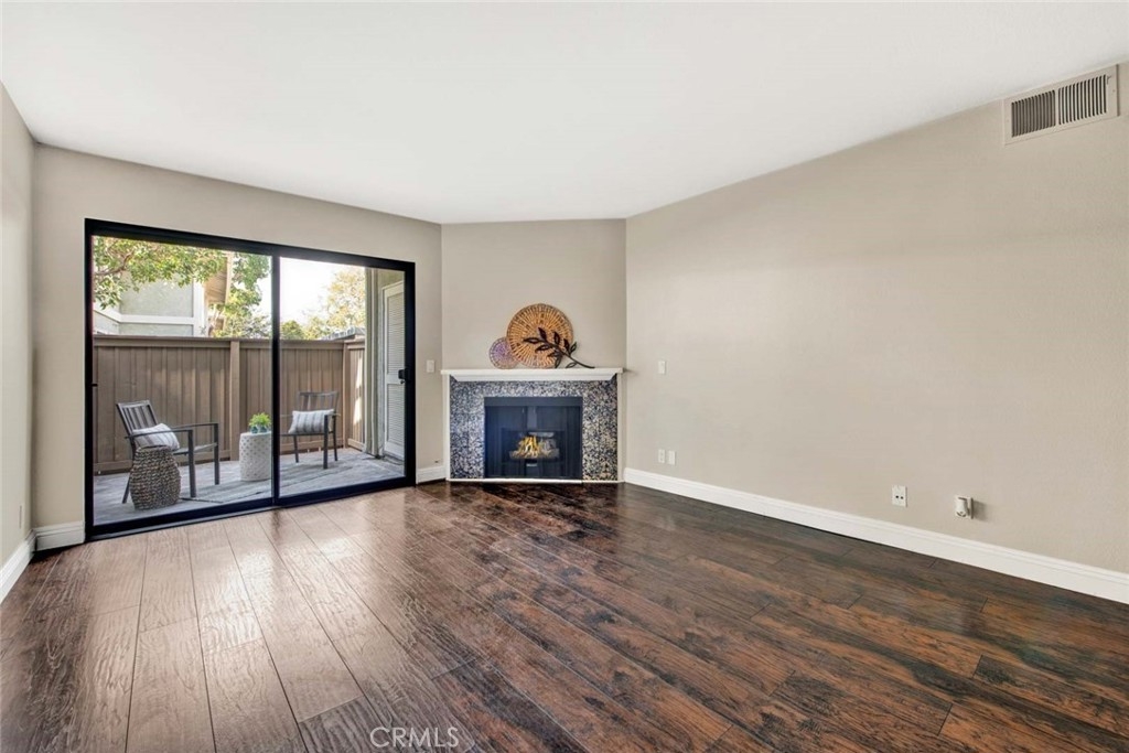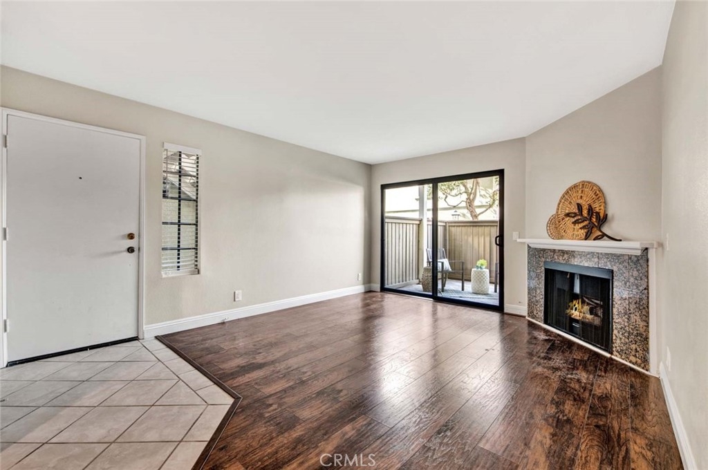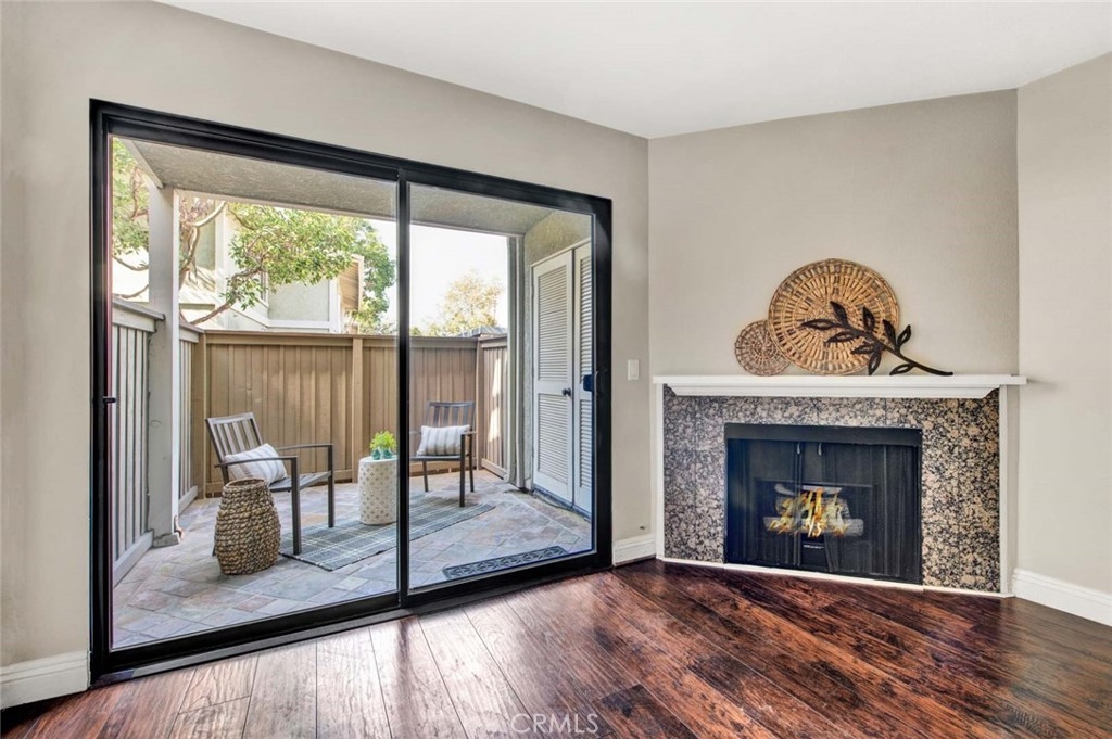 Desirable ground floor, one-bedroom, one-bathroom condo located in the sought-after gated community of Village Homes. This popular floor plan features an open living room with a cozy fireplace, a galley kitchen, and an inviting outdoor patio. The spacious primary bedroom offers a large walk-in closet, and the en-suite bathroom includes a separate privacy bathtub, shower, and toilet. Convenient in-unit laundry with washer and dryer included. The kitchen is well-appointed with stainless steel appliances, granite countertops, recessed lighting, and tile flooring. The living room and primary bedroom feature laminate wood-style flooring. Prime location within the community near pool / spa, and the convenience of a covered carport just steps away. Ideal Tustin location, close to Old Town Tustin and within walking distance to shopping and dining.