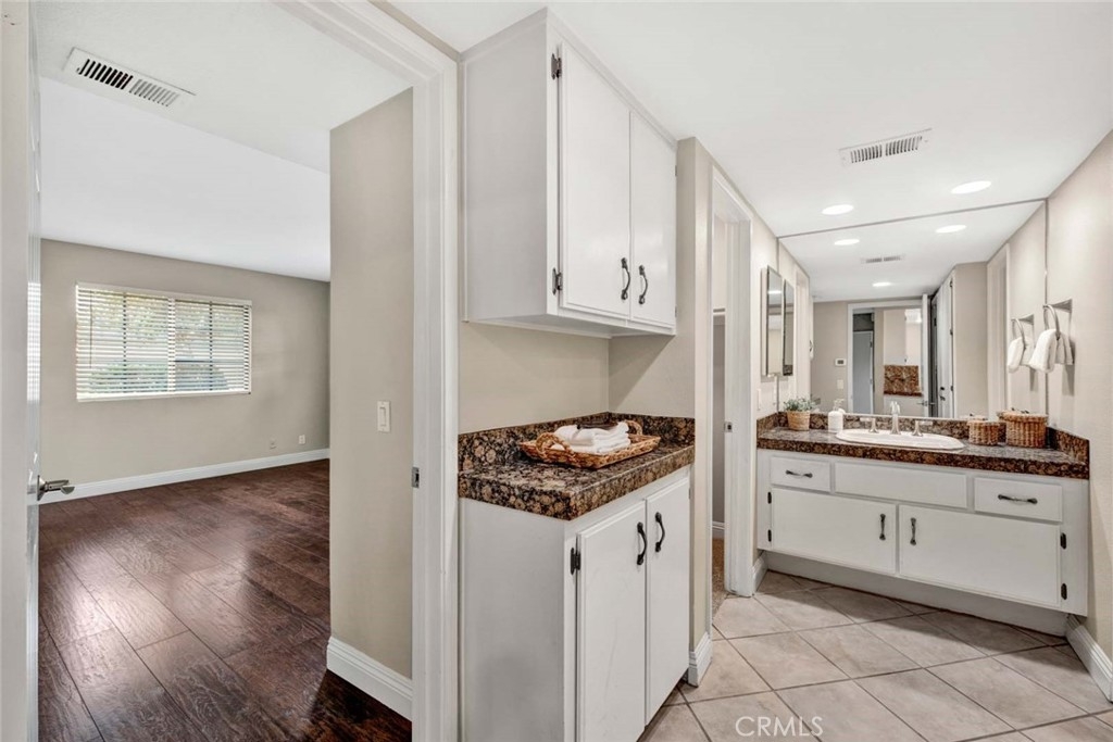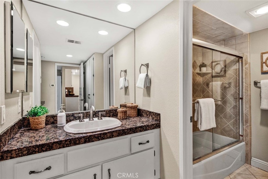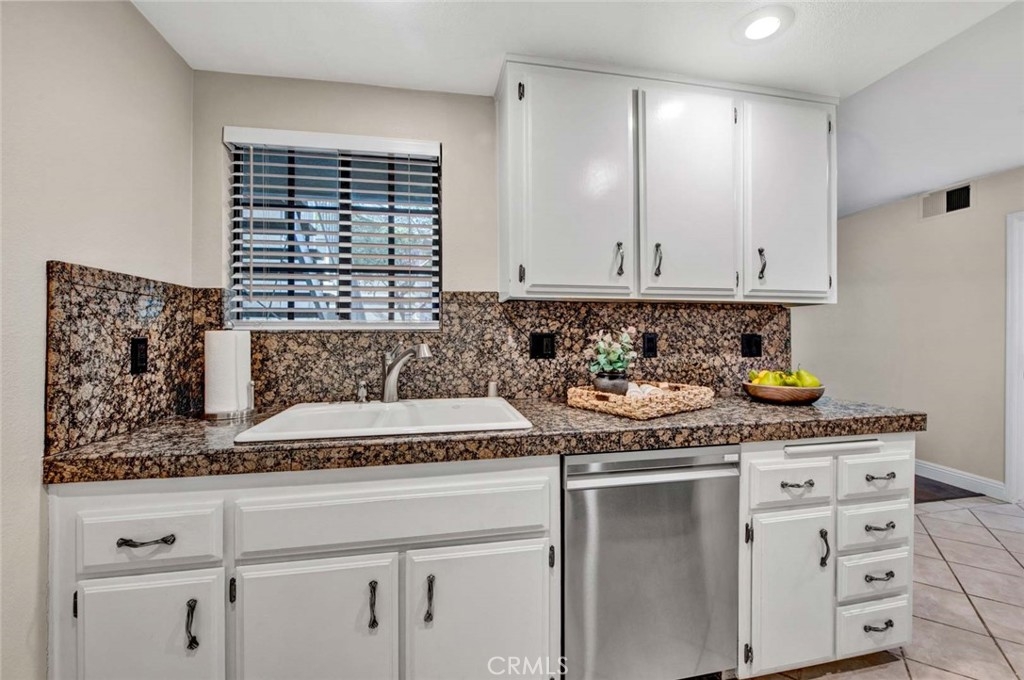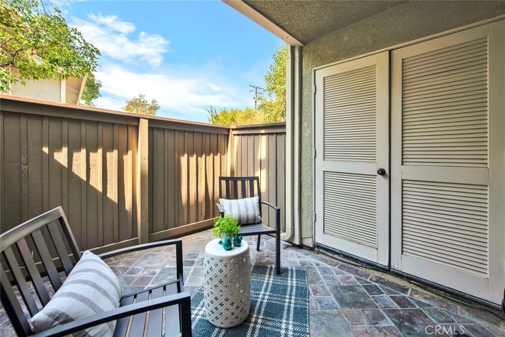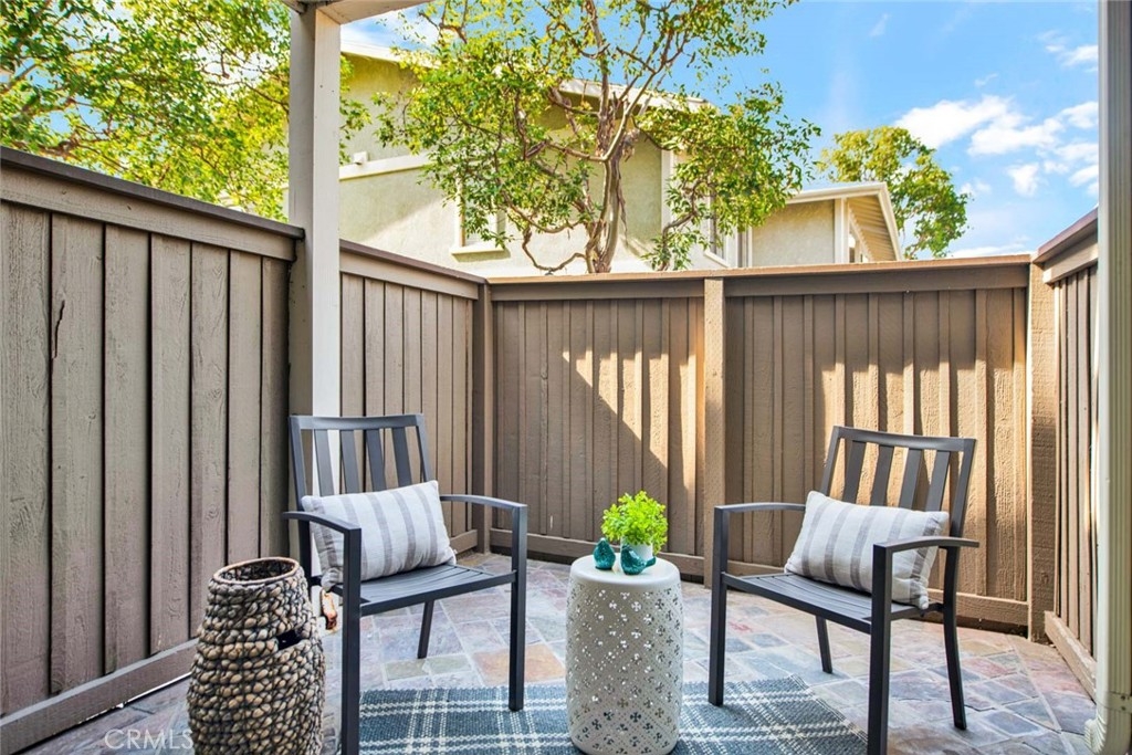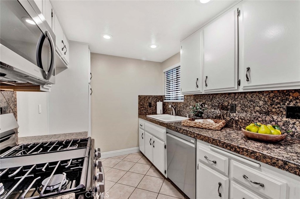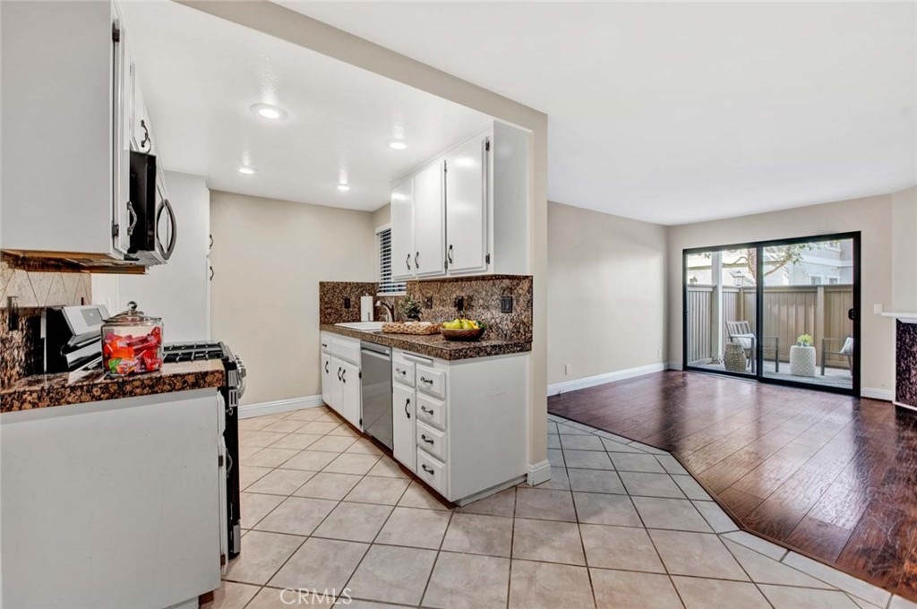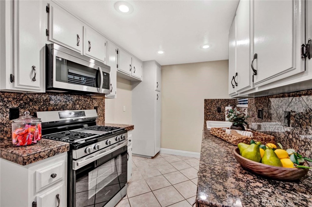 Desirable ground floor, one-bedroom, one-bathroom condo located in the sought-after gated community of Village Homes. This popular floor plan features an open living room with a cozy fireplace, a galley kitchen, and an inviting outdoor patio. The spacious primary bedroom offers a large walk-in closet, and the en-suite bathroom includes a separate privacy bathtub, shower, and toilet. Convenient in-unit laundry with washer and dryer included. The kitchen is well-appointed with stainless steel appliances, granite countertops, recessed lighting, and tile flooring. The living room and primary bedroom feature laminate wood-style flooring. Prime location within the community near pool / spa, and the convenience of a covered carport just steps away. Ideal Tustin location, close to Old Town Tustin and within walking distance to shopping and dining.
