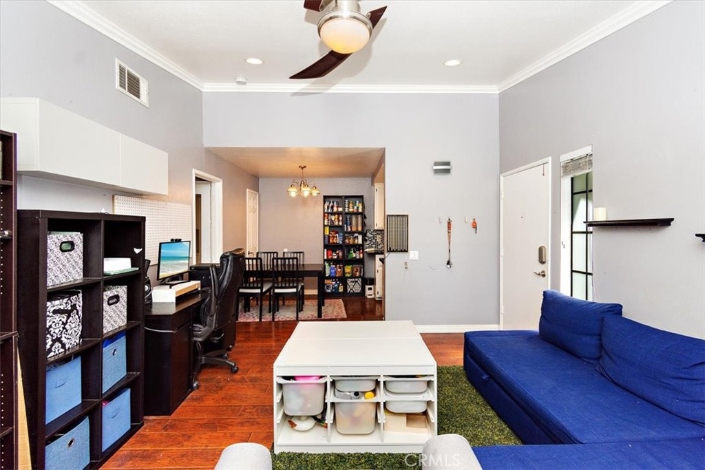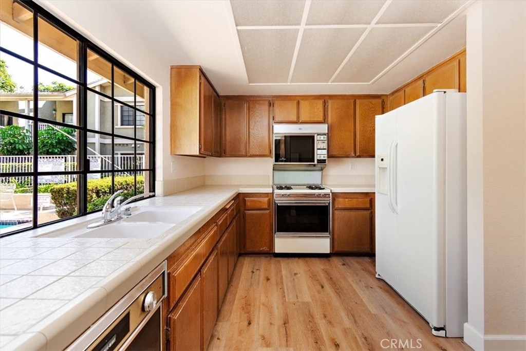 Welcome to 1111 Packers Circle #18, a stunning 1 bedroom and 1 bath condo that presents a golden opportunity for first-time homebuyers and investors alike. Nestled within the highly sought-after Village Homes gated community, this beautiful upstairs end unit offers an unparalleled living experience that is truly move-in ready. Upon stepping inside, you will immediately be captivated by the spacious and inviting atmosphere of this well-designed condo. The vaulted ceilings create an open and airy ambiance, while the upgraded floors, crown molding, and recessed lighting add a touch of sophistication to the living space. Beyond the living area, a large sliding glass door beckons you to the private balcony, where you can revel in the picturesque views of lush grass and tree-lined landscapes. The kitchen has been thoughtfully upgraded and an inside washer and dryer unit give you all the all conveniences contained within your cozy home. The bathroom is adorned with upgraded granite countertops and a large walk-in closet provides ample storage space for all your belongings, keeping your living area neat and organized and a generously sized master bedroom completes this condo. Whether you're a first-time homebuyer looking to embark on the journey of homeownership, or an investor seeking an attractive rental property, this condo offers the perfect blend of comfort, style, and convenience. Its move-in ready condition ensures you can settle in effortlessly and start enjoying the perks of this gated community; which includes a pool, multiple spas, and a recreation room for special events. Don't miss this chance to make this condo your own and experience the epitome of modern living in a delightful and secure setting centrally located close to the many attractions in Orange County and with numerous restaurants in and around old town Tustin.