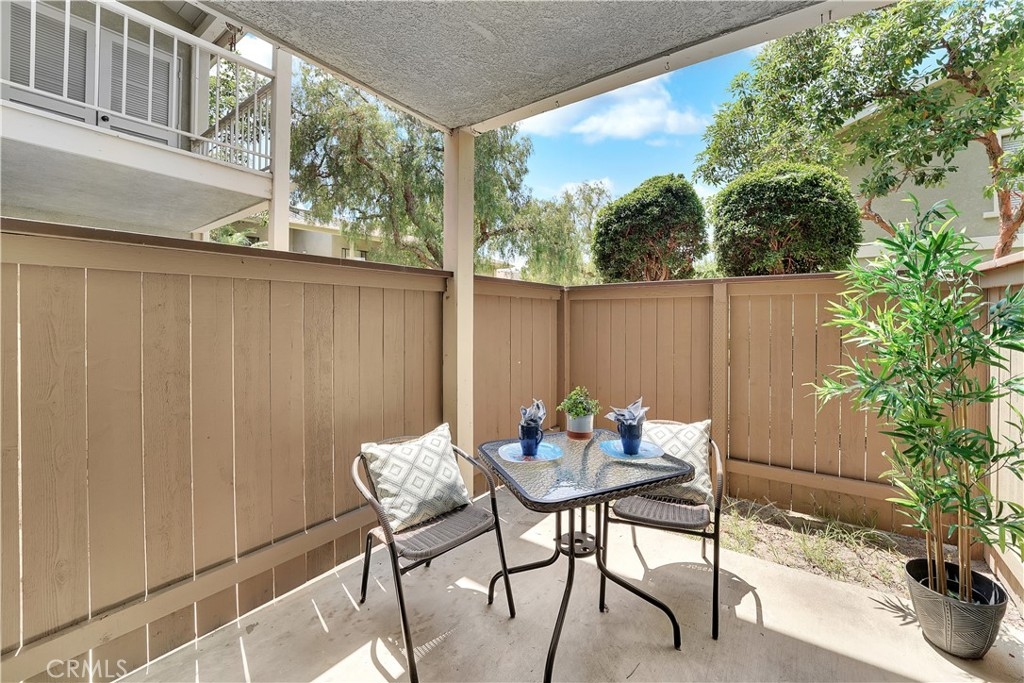 The Best One Bedroom Condo you will find in Tustin Located in the Premier Gated Community of Village Homes, Close to Everything! This Charming Ground Level Unit with an Open Concept Floorplan and Central A/C is Beautifully Upgraded Throughout, Including Newer Wood Laminate Flooring, Fresh Paint, High Base Boards, Plantation Shutters, Smooth Ceilings, Raised Panel Interior Doors, Designer Fixtures, and a Remodeled Kitchen with Quartz Countertops, White Cabinetry, Coffered Ceiling with Recessed Lighting, and Newer Stainless Appliances (5-Burner Gas Stove, Microwave, Dishwasher, and Refrigerator that Stays). The Bathroom is Gorgeous with Quartz Vanity and a Walk-In Shower with Floor to Ceiling Travertine Walls and Flooring. It has a Spacious Bedroom with Large Walk-In Closet with Organizers. Inside Laundry Closet with Stackable Washer/Dryer that Stays. The Large Living Room has a Crackling Fireplace with Mantel and Sliding Glass Doors that Open to a Private Tranquil Patio that's Perfect for Outdoor Relaxation, Dining, and Entertaining. There is a Storage Closet Off Patio and Another in Carport. This Highly Desired Community Boasts Resort-Style Pool, 2 Spas, Clubhouse, Lush Grounds with Walking Paths, and a Car Washing Area. It is Walking Distance to Shopping, Restaurants, Coffee Shops, and Gym. Central to Everything with Easy Access to Freeways, Toll Roads, The District, and Tustin Marketplace.