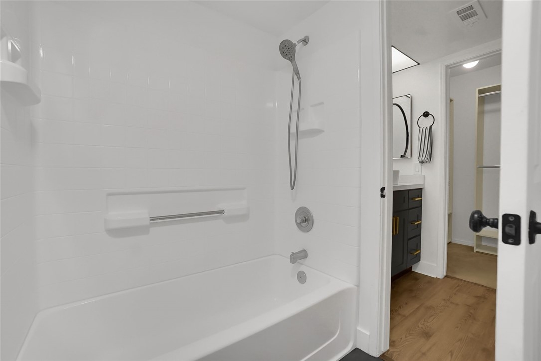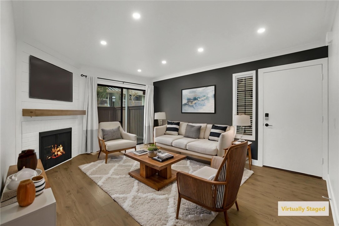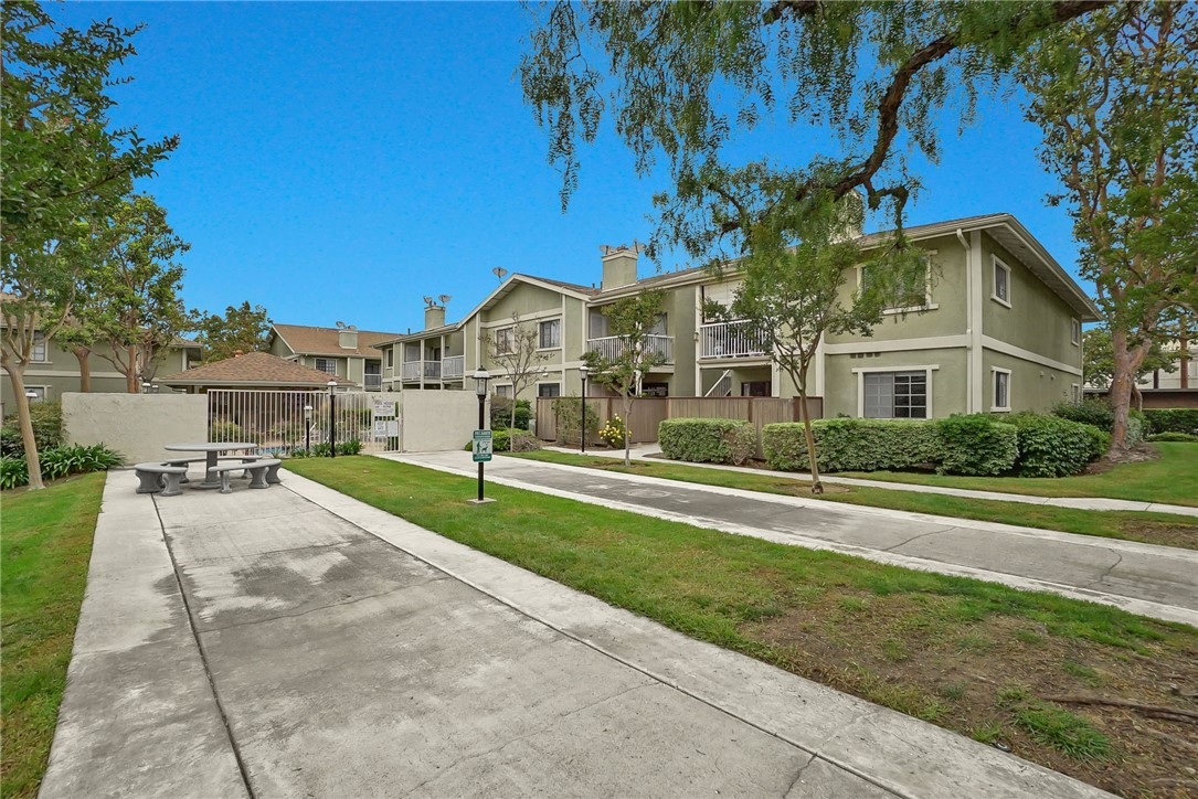 Welcome to the desirable ground floor, one-bedroom, one-bathroom condo located in the sought after gated community of Village Homes. This home is perfect for those seeking a move-in ready residence with modern upgrades. The popular floor plan features an open living room with an updated galley kitchen, recessed lighting and a patio providing great for grilling, lounging and providing extra storage.. The updated kitchen offers quartz countertops, subway tile backsplash, stainless steel appliances, and a large porcelain sink, perfect for those who love to cook and entertain. The spacious primary bedroom offers plenty of natural lighting as the corner unit. The large walk-in closet with tailored shelving offering both style and functionality. For added convenience, the recently upgraded stackable in-unit laundry with washer/dryer is included. This unit is in prime location within the gated community just steps away from the covered carport and near the pool/spa and recreation room, however not too close where neighborhood noise would be a concern. Ideal location, with easy access to Old town Tustin, Tustin Marketplace, 99 Ranch Market, Trader Joes, Albertson, and endless options for food.. Don’t miss this chance to own this move-in ready condo in the heart of Tustin!