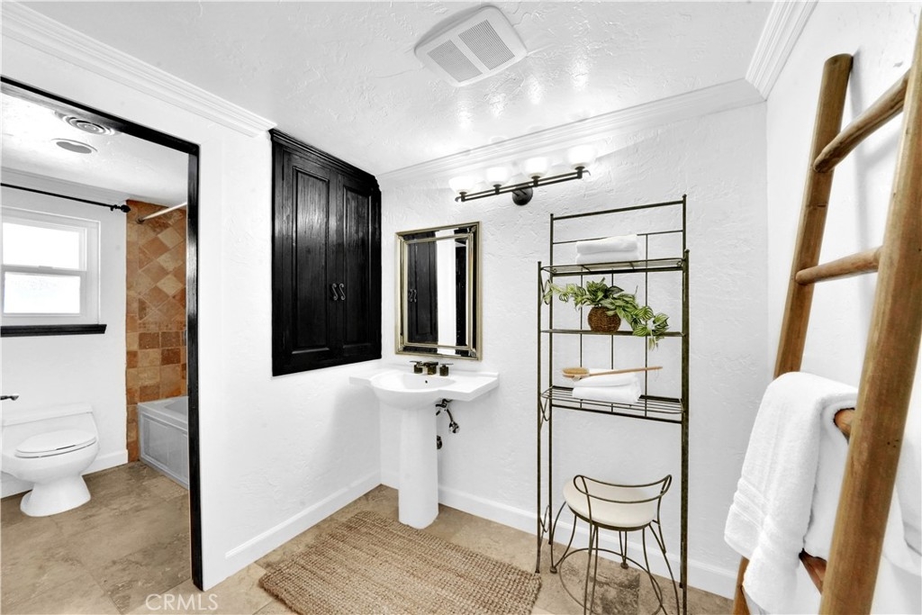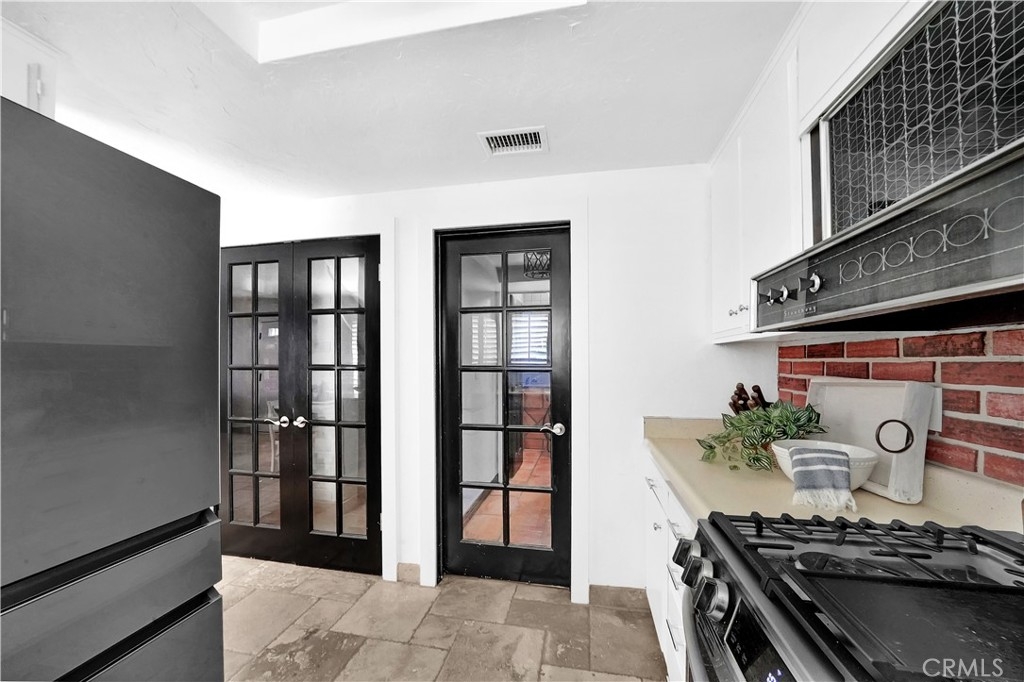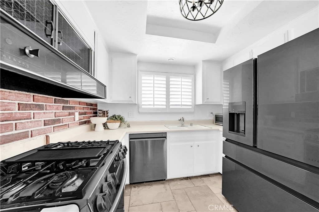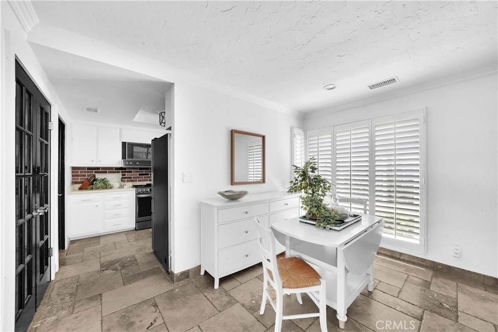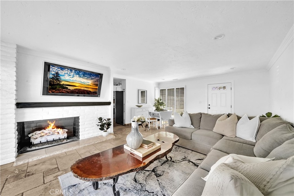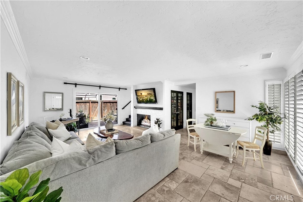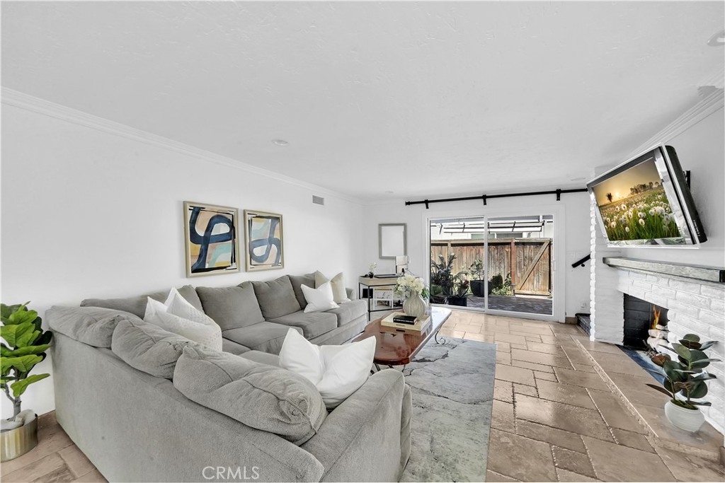 Nestled within the Broadmoor Park Community, at the epicenter of all things Tustin at First & Newport, is found a two-story townhome, updated with subtle charm and convenience in mind. This 3 bedroom, 1.5 bath highly appointed townhome is within walking distance from historic downtown Tustin, which includes shopping, restaurants, major grocery stores, parks, and service amenities. Broadmoor Park benefits from a community pool, jacuzzi, lush landscaping and recreation room all within a highly sought after tranquil environment. At entry, the spacious downstairs living area with large front windows is open and inviting. Lots of natural light brings attention to the travertine floors, cozy breakfast nook, and custom fireplace mantel. The landscaped private patio off the living area accommodates with ample space to enjoy an outdoor garden, a quiet reading spot, or barbequing with friends. The quaint kitchen consists of white cabinets, plenty of counter space, and stainless steel appliances. The large walk-in pantry is framed with glass double-doors which open up to built-in shelving. The downstairs half-bath has a Mediterranean feel with authentic Saltillo tiles which makes for a distinctive guest bathroom. An enclosed laundry area housing a full size washer and dryer is also located on the first floor. A carpeted staircase with mid-landing leads to three adequately-sized bedrooms. The master bedroom receives sunshine through large windows with an outside shade canopy, recessed lighting, and offers two separate closet areas and ample space for decadent bedroom furniture. Two guest bedrooms are also naturally illuminated with plantation shutters diffusing sunlight to one's needs. The oversized upstairs bath has been designed with lots of storage area, a laundry chute and a privacy door separating the bath and vanity areas. Additional notable home upgrades include new windows with plantation shutters, new front door with security screen, highly upgraded air conditioner and installed attic fan for energy efficiency, solid wood interior doors for insulation and noise, new range and dishwasher, crown molding, canned lighting, travertine tile floors in living and kitchen areas, laminate flooring in bedrooms, glass door walk-in pantry, full home water softener, private rear patio with concrete outdoor fireplace and more.