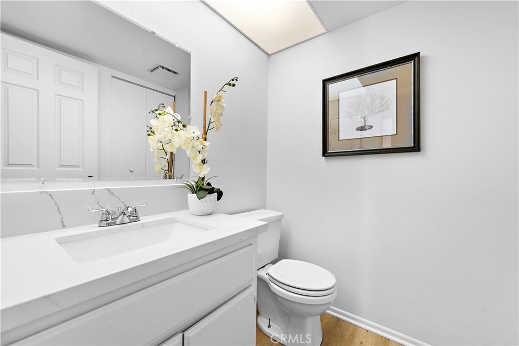 An exceptional, modern, upgraded condominium located in the Village Homes Community of Tustin. This gated condo has recently been upgraded with luxury plank LVP floors throughout. The kitchen features recessed lighting and Carrera white quartz countertops with a new stainless steel sink. The living room area leads to a private balcony offering beautiful views making it a light and bright entertaining area. The sizable master suite has vaulted ceilings with a walk-in closet providing great storage space. The secondary bedroom has a double set of doors that opens to the family room and can be used as a den, bedroom, or office. The home is newly painted with many upgrades, including central air and in-unit laundry with a stacked washer-dryer. The Village Homes community is located right next to the Tustin Heights shopping center so shopping and dining options are just a few steps away. This condo offers one of the best values in the OC as it provides quick access to the 5, 55, and 22 freeways. For parking, there is one reserved spot including cabinets for storage and ample parking in the complex.