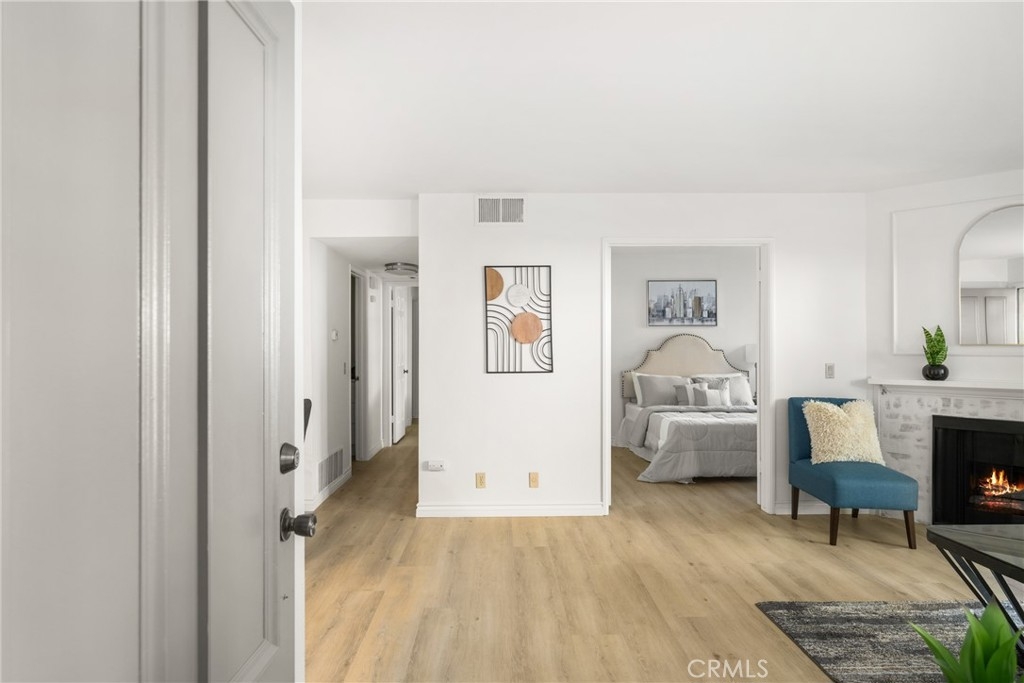 Welcome to your turnkey first floor condo in the charming gated community of Village Homes. This light and bright 2 bedroom, 2 bathroom home is centrally located near the pool with views of greenery in the most desirable location in the complex. It was recently renovated with new, hardwood-looking luxury plank flooring, interior paint, bathroom vanities, and light fixtures, and features an open floor plan. Relax in front of the cozy fireplace and on your private, covered patio with picturesque views. Unwind in the spacious primary bedroom, ensuite, complete with a walk-in closet and beautiful new vanity. The second bedroom, just off the living room, features a large closet accessible from both the bedroom and the hallway. Enjoy the convenience of in-home laundry, reserved carport K15 just a few steps away, plentiful guest parking, a community pool, two spas, and a clubhouse with a full kitchen for special events. The community is well-maintained with mature trees, greenbelts, lush lawns and a low $370 HOA. Walk to Trader Joes, Smart & Final, Albertsons, Michaels, and many popular restaurants and stores. Located near Old Town Tustin and award-winning schools. Don't miss this wonderful opportunity to own this wonderful home.