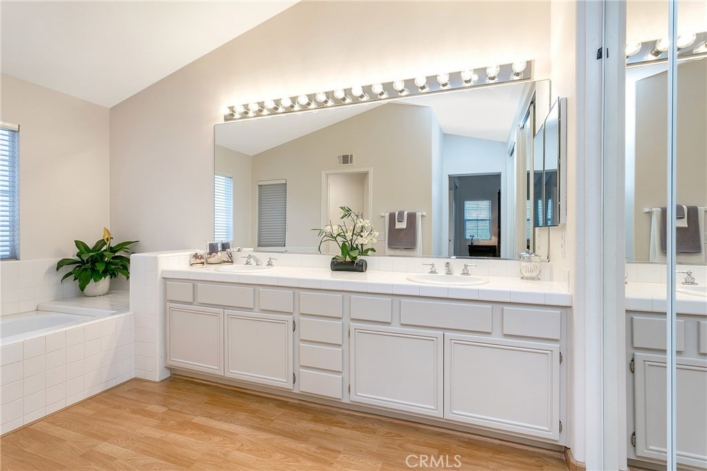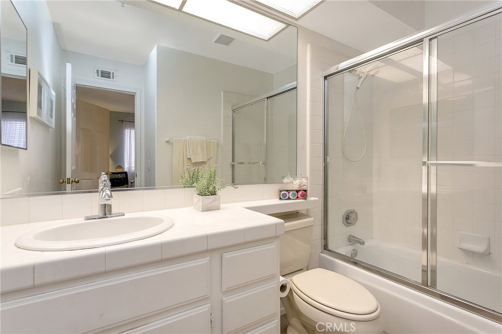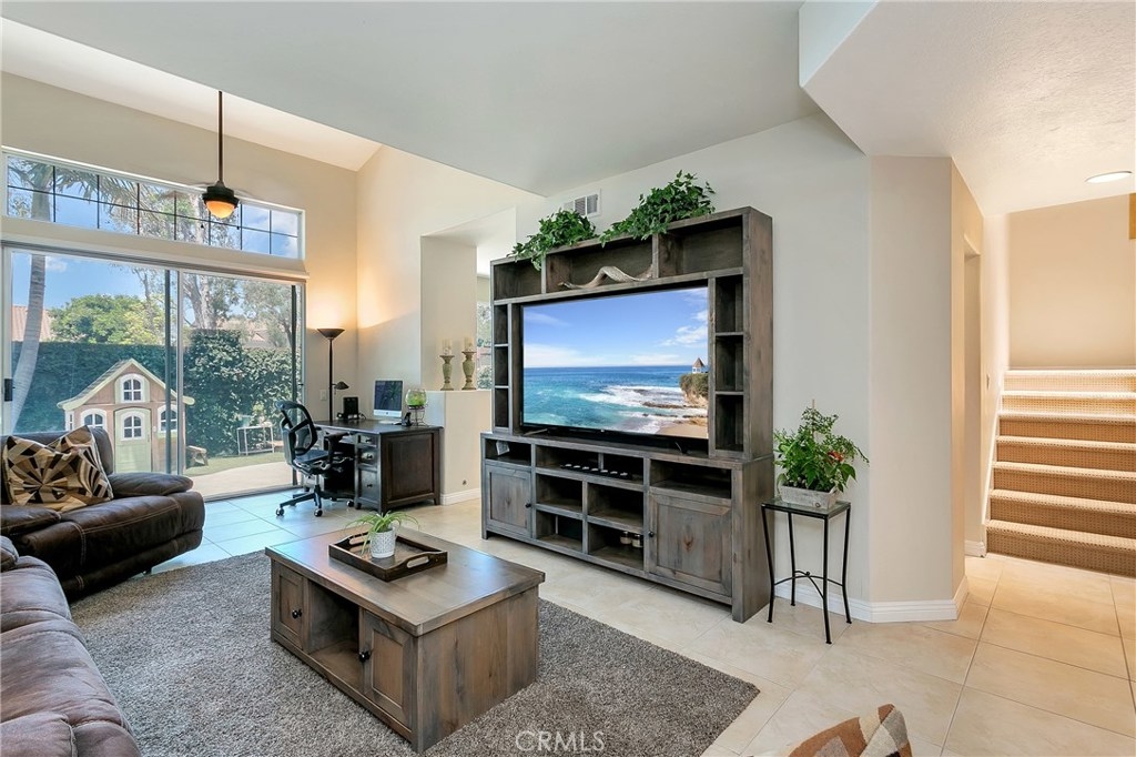 Live Beautifully with luxury and comfort in rarely on the market Plan E, which is the most spacious plan the gated community of VENTANA has to offer. This courtyard two-story open floor plan home includes three bedrooms and three full baths designed to appeal to buyers who desire a hard to find first-floor bedroom. This well-appointed design home features a spacious living-room and space allocated to set-up a formal dining-room area if desired. The Chef-inspired designer kitchen is equipped with in vogue QUARTZ counter tops, stainless steel appliances and a beautiful oversized KOHLER porcelain sink. Enjoy a beautiful breakfast bar, convenient nook, or family room that includes a cozy fire place. The home includes an attached full drywalled two-car garage that leads to a separate full-size laundry area. The entire first floor boasts beautiful porcelain 20-inch square tile throughout. On the second floor, you will find high end carpet and laminate flooring. The second story features the functional master suite with separate soaking tub, shower and desirable dual sink vanity. The additional bedroom has its own en-suite bath also. VENTANA’s convenient location is near TUSTIN RANCH GOLF COURSE and easy access to recreational amenities like Tennis Courts, tot lot, Olympic size pool and spa with multiple parks nearby. Just a short distance to Peter's Canyon to hike and connect with nature. Residents also enjoy magnificent schools like Beckman High, Pioneer Middle and Ladera Elem.