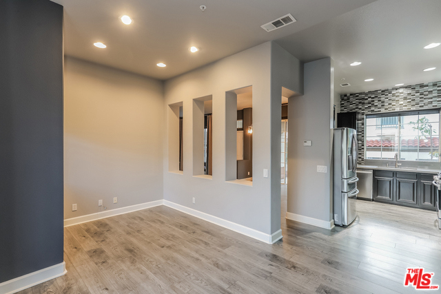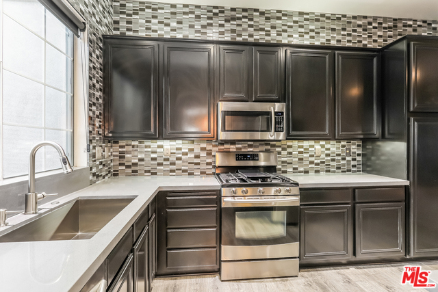 This Tustin two-story townhome offers a den, loft, gas fireplace, stainless steel appliances, kitchen quartz countertops, master bathroom dual sinks, separate tub and shower, and a two-car garage.