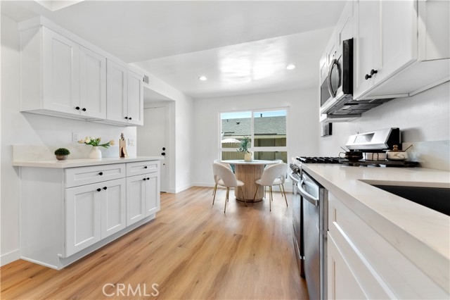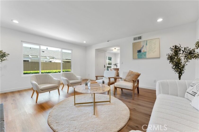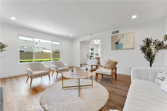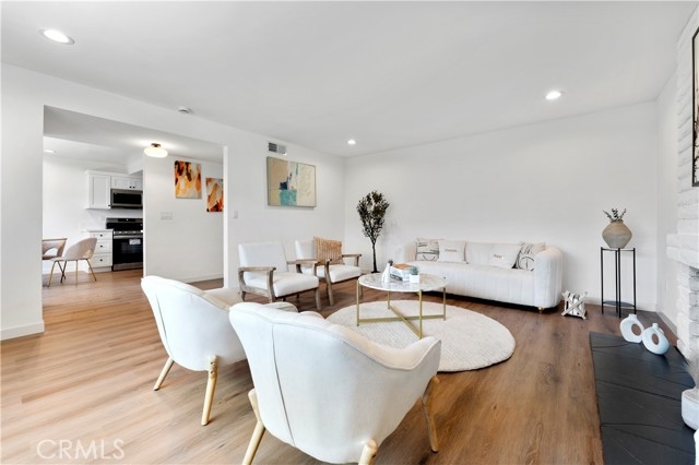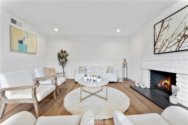 Welcome to this beautifully updated residence located in the desirable Tustin Verdes HOA complex in Tustin. This lovely home has been meticulously remodeled and contributes to a modern and airy ambiance. The expansive living room, complete with a fireplace, creates a warm and inviting atmosphere. The main bedroom is generously proportioned and includes an ensuite bathroom for added convenience with access to the private patio ideal for enjoying morning coffee or outdoor relaxation. The kitchen boasts beautiful cabinetry is conveniently situated adjacent to the dining area. The stove and dishwasher, flooring, kitchen, and bathrooms have been recently upgraded, ensuring a stylish and comfortable living experience. Additionally, the home's central location provides easy access to shopping, dining, entertainment, and commuting routes. Nearby attractions such as Tustin Ranch Golf Course, Tustin Market Place, Peter's Canyon, and Old Town Tustin offer abundant recreational activities and amenities. This single-level home in Tustin combines modern amenities, a convenient location, and a spacious layout without stairs, making it a standout within the complex. HOA fees cover water, trash, and gas, with electricity being the only utility expense. Beyond the community, residents have access to a variety of local spots such as The Lost Bean and Tustin Brewing Company, as well as numerous markets for shopping. Dining and entertainment options abound, with Old Town Tustin less than two miles away.