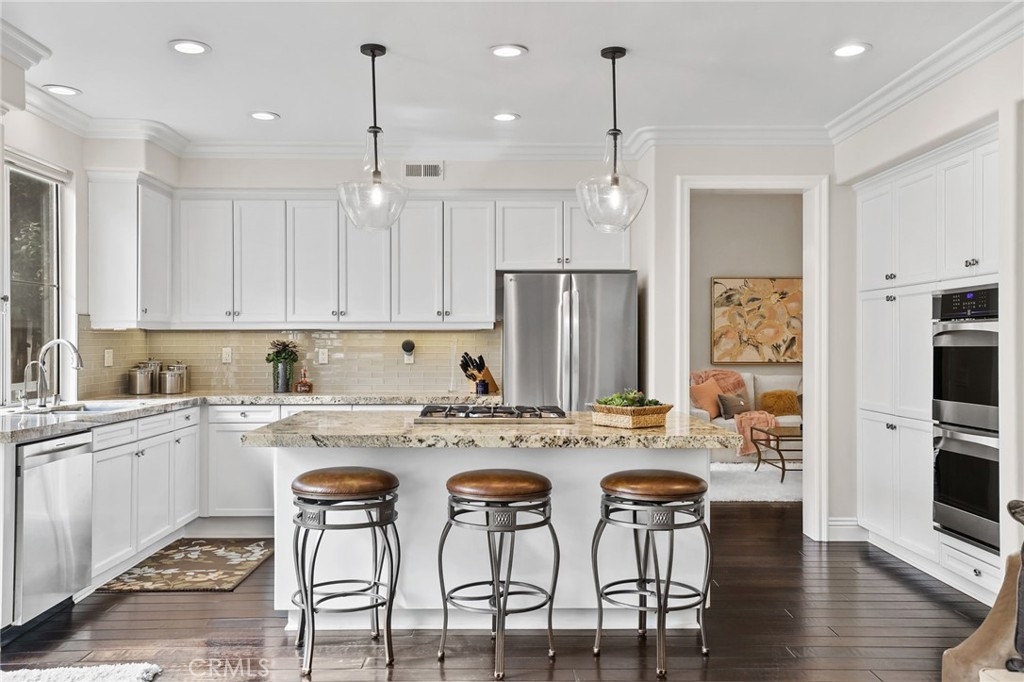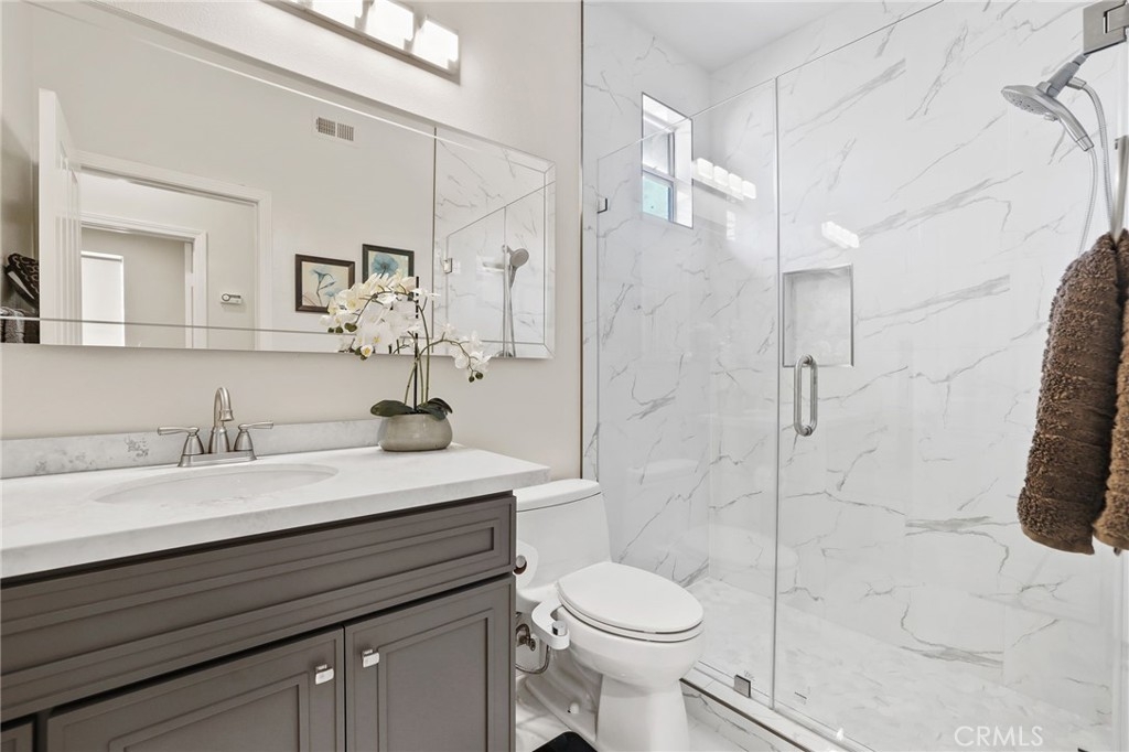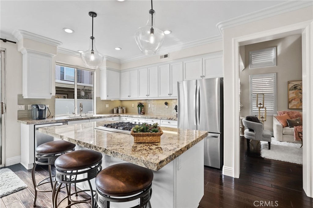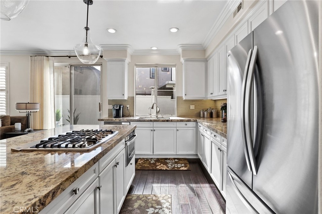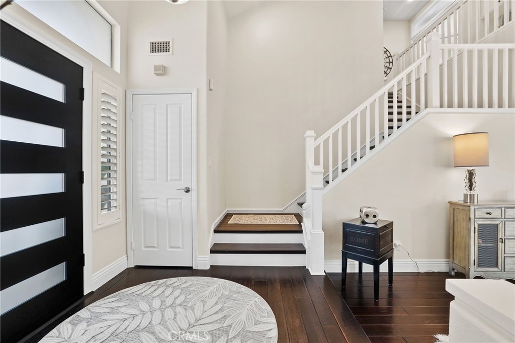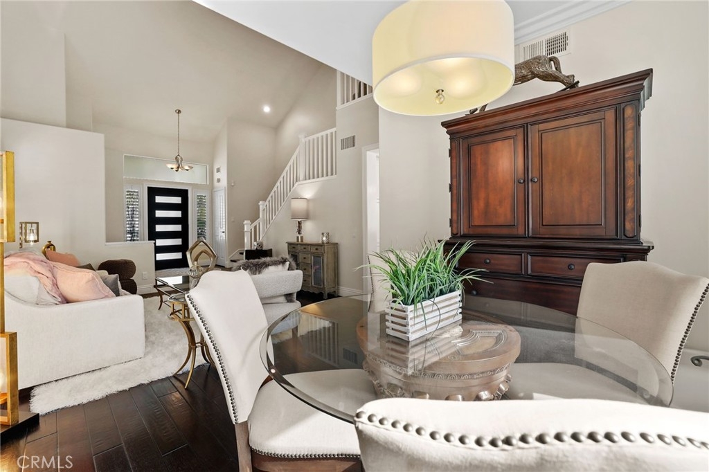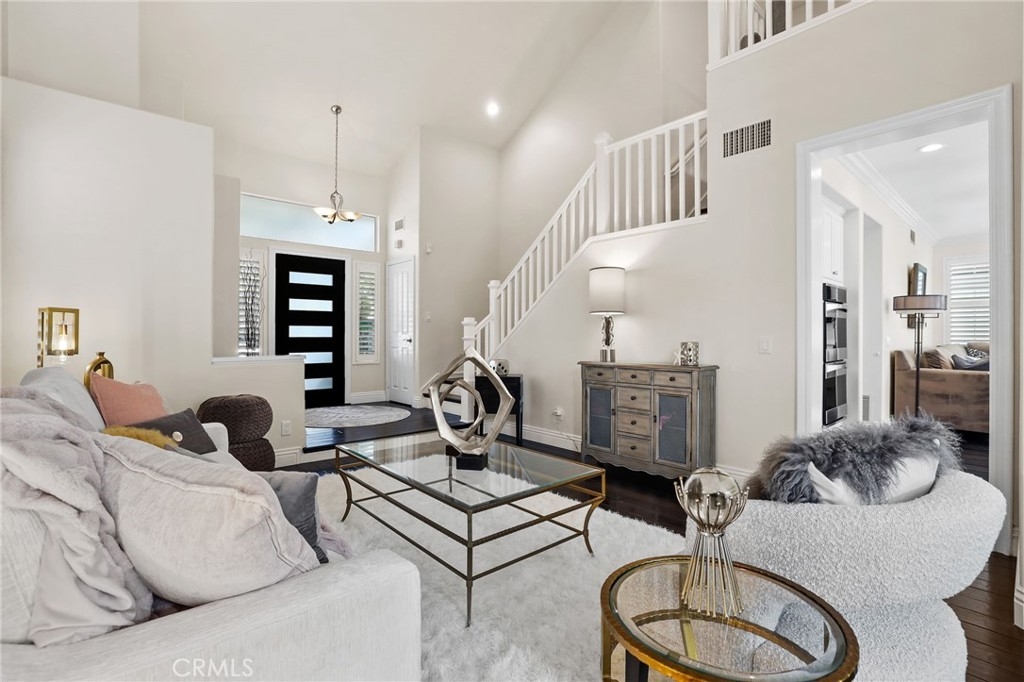 Nestled in the charming tree-lined golf-course community of Miramonte, this highly coveted detached home is located in one of the most desirable gated communities in Tustin Ranch. Featuring 3 spacious bedrooms, 2.5 bathrooms and room to add loft area. Living room has high vaulted ceiling with exquisite architecture offering an impressive open layout that extends to formal living and dining areas. Light and bright, remodeled kitchen boasts granite counter space, custom white cabinets, stainless steel appliances and Island for entertaining. Recessed lighting, gorgeous, distressed hardwood flooring throughout first and second floor. Relax and recharge in your luxurious master suite with spa-like bath and large customized walk-in closet with built-in organizers. Ceiling fans in all bedrooms. Generously sized backyard just waiting for your inspirational patio ideas. Great outdoor living with low maintenance turf and fruit trees. 2 car garage with overheard storage and full-size driveway, just steps from the neighborhood resort-style pool & spa. Close to award winning Tustin School District and walking distance to well-knownTustin Sports Park, Tustin Ranch Golf Club, Tustin Market Place for shopping, dining, entertainment and more... A MUST SEE & HURRY! YOU WILL NOT BE DISAPPOINTED!