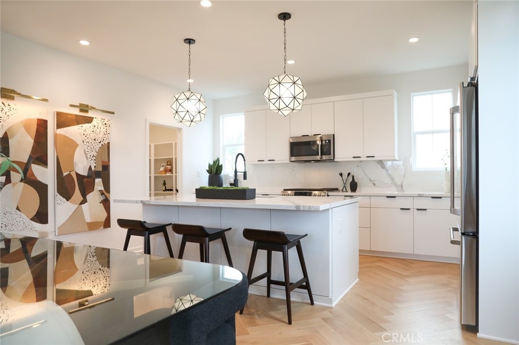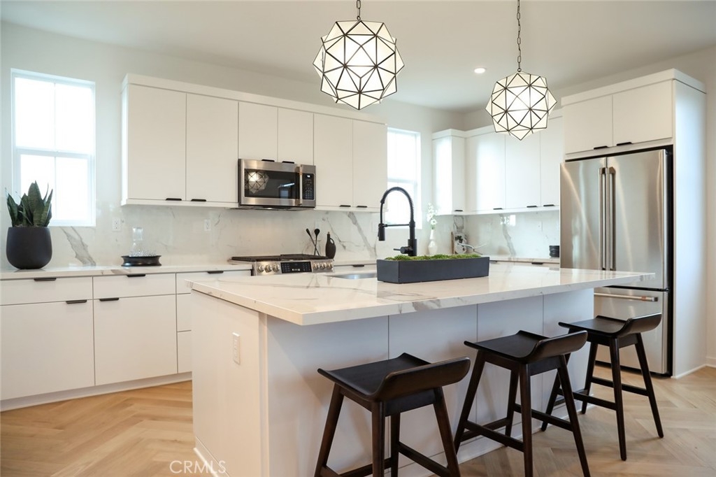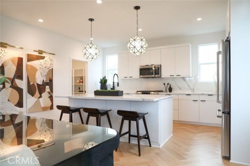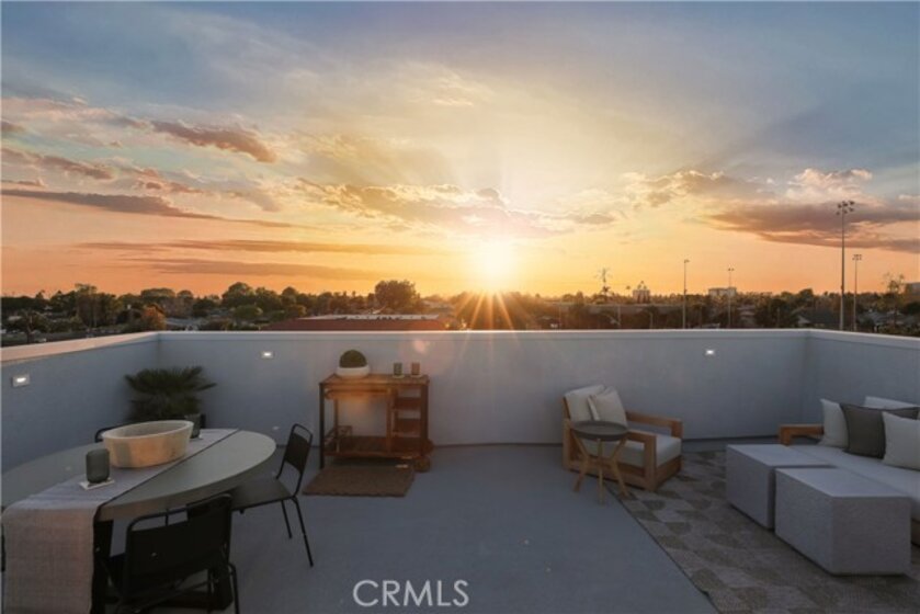 The only new construction community in beautiful Tustin- views to Columbus Tustin Park and a short walk to Old Town Tustin. This paired home allows you to choose your own interior finishes. Fix your price now for a Spring 2025 move-in while interest rates continue to drop! This Plan 2 townhome offers four bedrooms, one at the entry level with a full bathroom, plus a FABULOUS ROOFTOP DECK, (over 500 SF) with panoramic views of the Tustin Hills, City lights, sunsets and more! Enjoy a full ensuite bedroom at the entry level right from the entry way and direct access two car, side by side garage. Upstairs you will be wowed by the large great room, dining area and fabulous gourmet kitchen with island. Included in your new home are your choice of kitchen cabinets, quartz countertops, stainless steel appliances, designer selected flooring packages and solar, all in this price! Light and bright end location with plenty of windows and a guest powder room too!. Upstairs there is a large primary room with walk-in shower, dual sinks and a large walk-in closet plus two more bedrooms with a shared bathroom including tub. Enjoy the convenient laundry room with linen cabinet. Completed with state of the art construction with structured wiring to keep you connected. SOLAR PANELS INCLUDED! Enjoy a lock & leave lifestyle and low maintenance living with our gated & private outside lounge area maintained by the community association. Tustin boasts a highly rated, distinguished school system, low taxes (no CFD or Mello-Roos) and a central location... just steps away from Old Town Tustin, which offers shopping, fine dining, entertainment and a great place to just unwind. Located a short drive/minutes to the beach, South Coast Plaza, Angel Stadium, Disneyland and all major business & shopping hubs such as Irvine Spectrum and Fashion Island. Like to travel? John Wayne airport is less than 7 miles away from your new front door. Enjoy the benefits of new construction and warranties that come with owning a new home. Pictures are of the model home