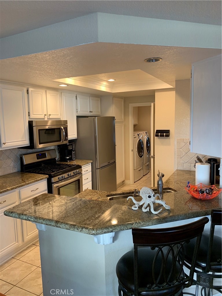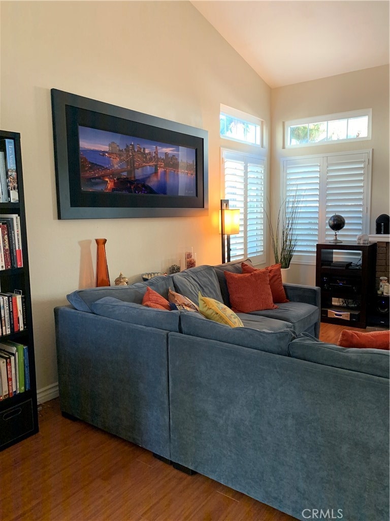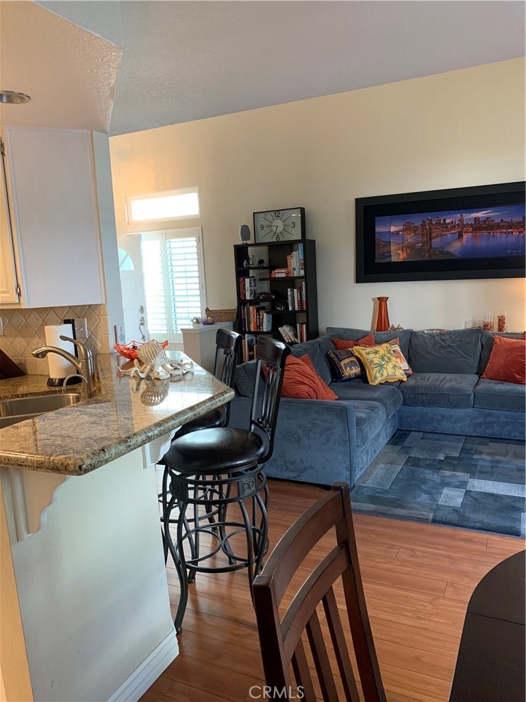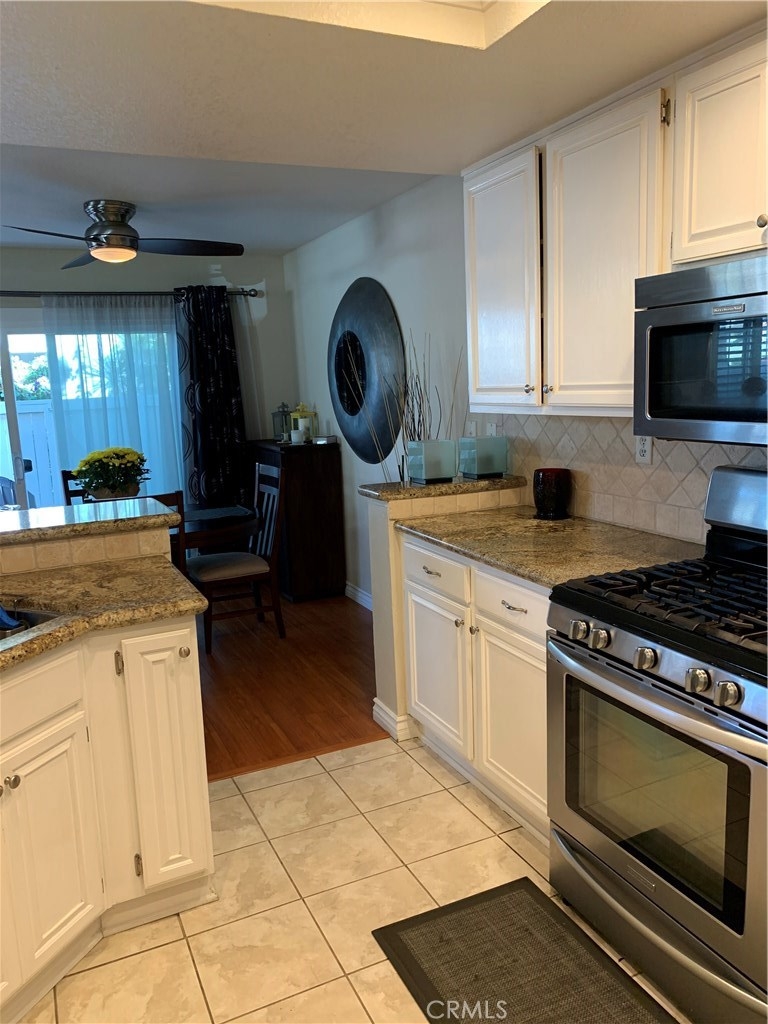 One of the finest locations in the Tustin Ranch Sycamore Glen Tract. This 1407 sq. ft Townhome built in 1989 offers you 3 bedrooms and 2 ½ baths with granite kitchen counters and tile flooring. The vaulted ceilings make this home feel open and spacious and include upgraded dual pane windows and slider and interior doors. Generous size laundry room off kitchen and convenient access to 2 car garage. Dining area has slider access to intimate patio – perfect for entertaining or simply relaxing. Easy access to Greenbelt area and walking paths. The gas fireplace in the living room is perfect for cool winter nights. There are custom white shutters throughout the home. The master bath offers wonderful natural light by way of a new skylight with adjustable shade feature. Highly desired cul-de-sac location with extra parking. HOA includes pool, spa, landscape care and waste pickup. This home is clean, tidy, turnkey and ready for you to enjoy the Holidays!