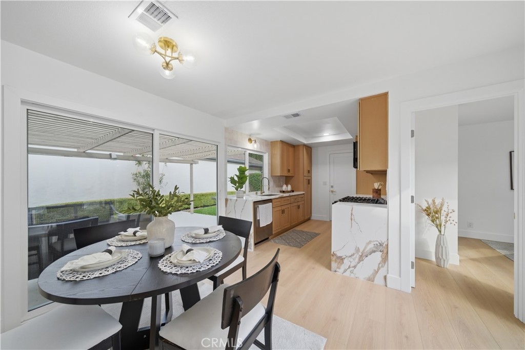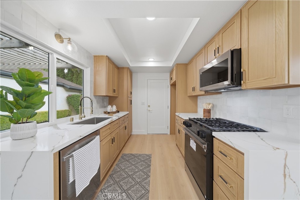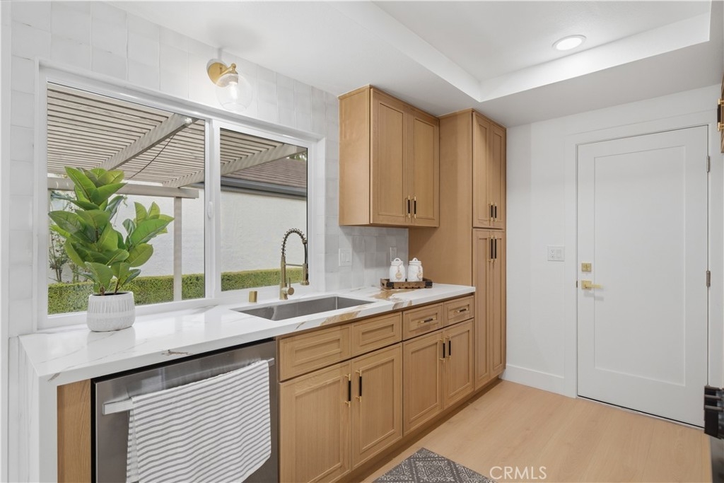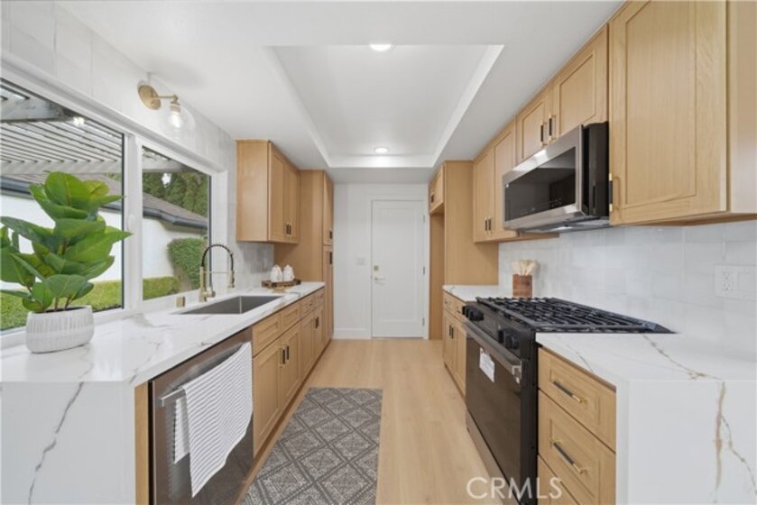 This fully renovated, sophisticated residence, nestled within the prestigious Laurelwood Community, represents a complete reimagining of modern suburban living. Extensively remodeled to blend timeless architecture with contemporary luxury, this gem showcases a meticulously curated space designed for those with discerning taste. The home’s transformation begins the moment you step into the light-drenched living room, where natural light and a floor to ceiling designer finished fireplace set the tone. The heart of the home, the chef’s kitchen, has been elevated with premium quartz countertops including quartz “waterfall” finishing at the open ends of the all-new cabinetry, recessed lighting, updated fixtures and hardware and stainless-steel appliances ensuring every meal is prepared in an environment of absolute refinement. Off of the adjacent dining room, middle open sliding doors lead out to an interior alcove which bathes multiple surrounding rooms in warm and inviting natural light. With 3 total bedrooms, including a fully renovated primary bedroom with a spa-like ensuite and great light from the central alcove, and a completely renovated guest bath, this home is fully ready for its’ next chapter. Off the kitchen is a large sliding door which leads out to an enviable private yard space which features a covered patio, a large grass area and mature planter beds. The perfect place to play or entertain in privacy and security and, together with the kitchen, allows for true indoor/outdoor living. An attached direct access two car garage with dedicated laundry hook ups completes the residence. Situated on a quiet, neighbors only tree lined street in Tustin, which is known to have an unparalleled lifestyle, residents enjoy a perfect balance of historic charm and modern convenience. Located just moments from the vibrant Old Town Tustin, high-end retail at The District, top-tier Orange County dining and great local schools. For those seeking an active lifestyle, the community offers lush parks and easy access to major commuting corridors, making it a premier hub for both work and play. This is more than a home, it is a meticulously upgraded sanctuary. Welcome home.