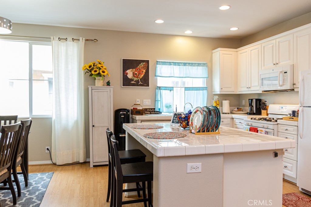 Beautiful 3 Bedroom, 2.5 Baths tri-level home in Tustin(all bedrooms upstairs). Kitchen has tile counter tops, nice large island and breakfast area. Nice size pantry in kitchen. High ceilings give the home a bright open feel. Upstairs stackable laundry with full size bath and nice hallway linen closet. No Mello Roos and low association fee. 2 car oversize attached garage & plenty of guest parking. Front private patio with gate great for grilling and evening drinks. Easy access to major freeways, Tustin Marketplace and downtown Tustin. Great for first time buyer or investor. A MUST SEE!