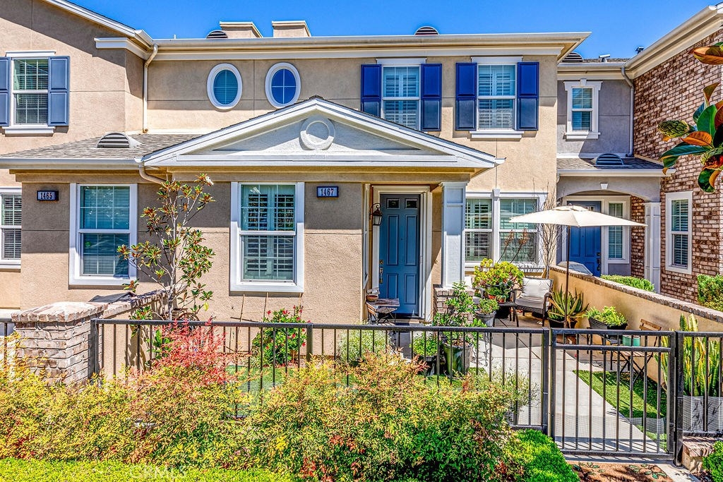Welcome to 1467 Montgomery, a nearly new William Lyon built Mirabella town home located in the thriving Columbus Square neighborhood of the Tustin Legacy. Built in 2012, this beauty offers a contemporary style of living with a great open floor plan with a large front patio and located directly across from Montgomery Square Park. The spacious great room has stunning hardwood flooring, custom plantation shutters and crown molding. The floor plan leads graciously to the gourmet kitchen featuring stainless steel appliances, granite counters and bright white cabinets. An additional nook off the living area offers a great space for a home office, sitting area or bar. Newer carpeting on the second level where you will find a loft area, three bedrooms including your spacious master suite, laundry room, secondary bath and two guest bedrooms. Pristinely located down the street from the community clubhouse and a short stroll to the Village of Tustin Legacy Shopping Center offering Stater Brother, CVS, restaurants and more! Zoned for Heritage Elementary-the newest school in Tustin, a magnet STEAM school and the ready to open Legacy Academy Middle and High schools. Close to the new Veteran's Sport Park. Convenient to freeways, beaches and John Wayne Airport, life is good in the neighborhood!