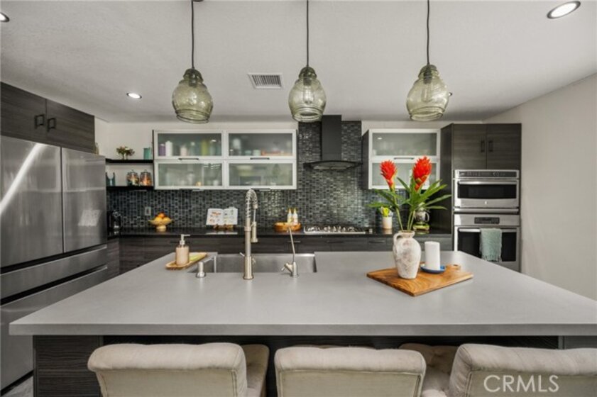Discover a rare standout where contemporary design meets spacious, airy living. This impeccably renovated 2-bedroom, 2.5-bathroom townhome offers a level of style and volume rarely seen at this price point. From the soaring vaulted ceilings to the high-end finishes, every inch of this home has been curated for the modern buyer. The main level features an extremely open floor plan bathed in natural light. The showstopper is the fully renovated chef’s kitchen, boasting sleek dark cabinetry, premium stainless steel appliances, and a massive waterfall-edge island that overlooks the living area. Transition seamlessly through sliding glass doors to your large private patio, an ideal retreat for summer dining or evening drinks by the fire. Upstairs, the home continues to impress with a huge, versatile loft- whether you need a sophisticated home office, a secondary media lounge, or a guest space, this area provides the square footage to make it your own. The primary suite is a true sanctuary featuring a large footprint, a massive walk-in closet, and a newly renovated ensuite bathroom with designer tile and luxury fixtures. Located in a highly walkable pocket of Tustin, you are just minutes away from local boutiques, trendy dining, and major freeways for an easy commute. Offered at just $820,000, this is an incredibly rare opportunity to own a turnkey, designer-finished home in one of Orange County’s most sought-after communities.