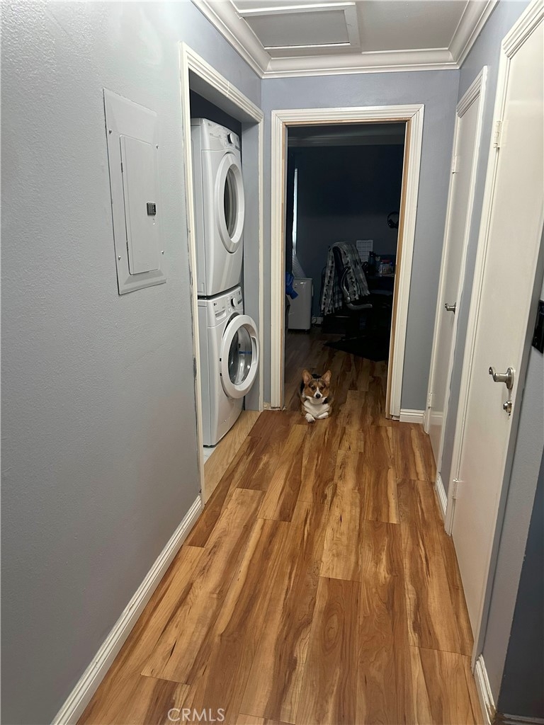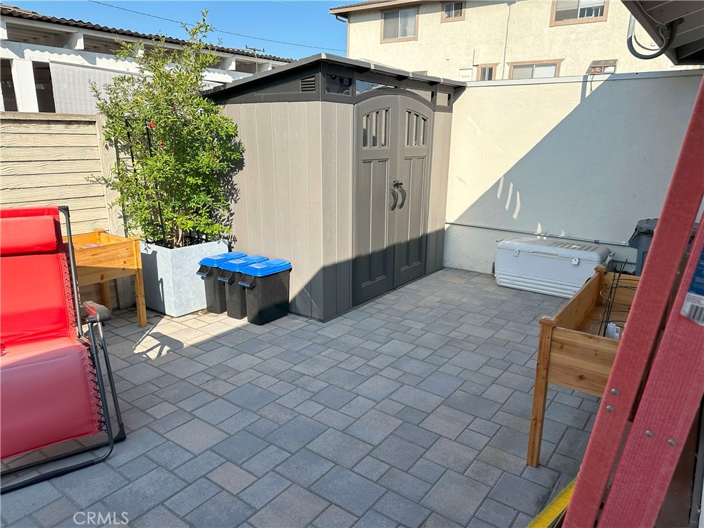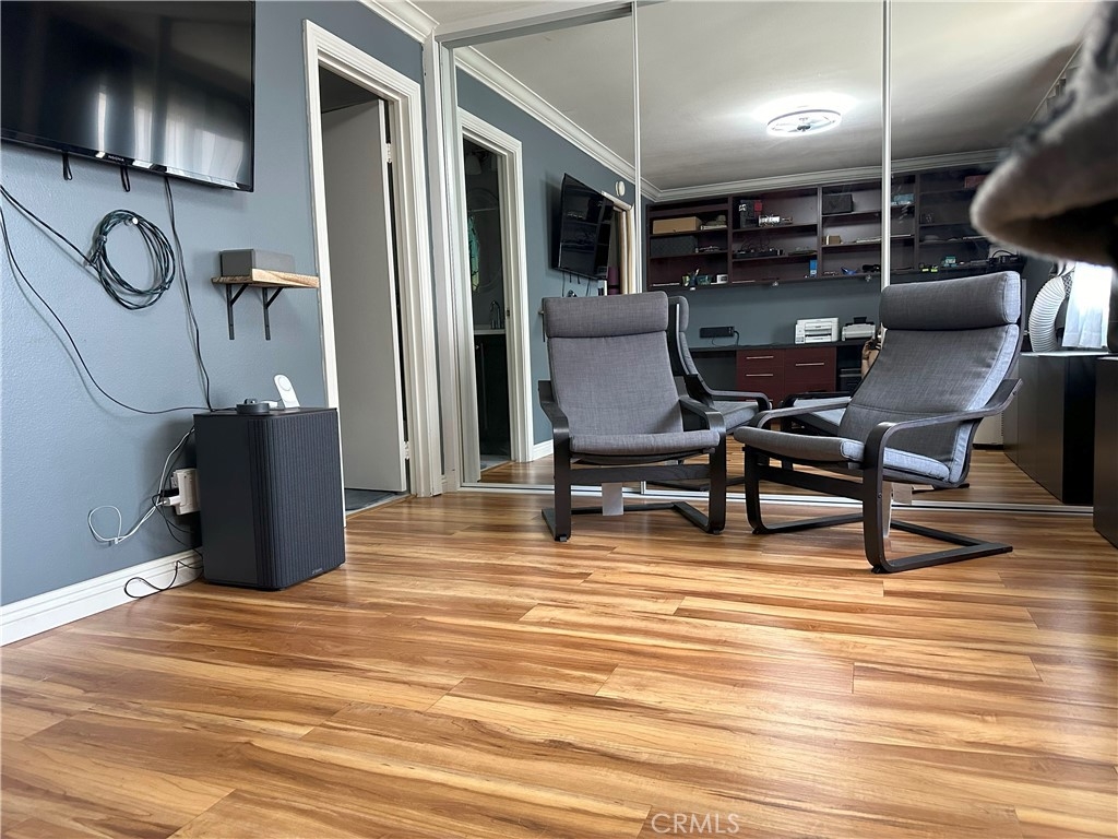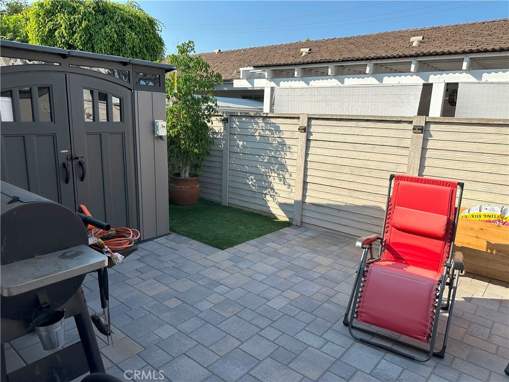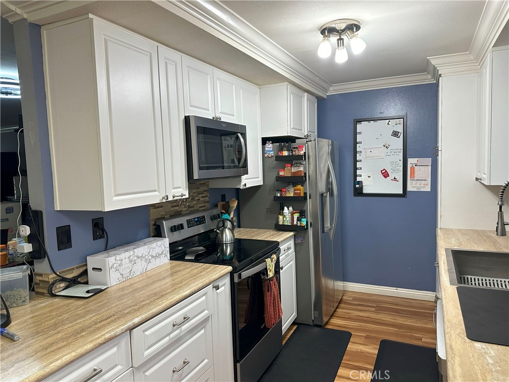 MUST SEE! MOVE-IN READY spacious two bedroom, two bath, end unit Gem in Sycamore Gardens. This home will welcome you with a large open living space. You will find low maintenance, heat, stain, scratching and moisture resistant Luxury Vinyl Flooring that looks like beautiful wood. This property features many upgrades including: Inside laundry, Updated kitchen with large sink, Updated/Remodeled bathrooms, New ceiling fans throughout, Crown Molding throughout, and recently replaced A/C unit in the living room. This property doesn't stop there, it also offers a large, private backyard that was remodeled last year with beautiful pavers and a pet-friendly turf patch, and the community's first EV charger is installed in this property's carport. The roof has also been replaced by the HOA in the last couple of years. Both bedrooms are large and feature en-suite bathrooms and large 3 door closets. The second bedroom has a built-in desk and a custom-designed closet storage system. Appliances are included. This property also includes one assigned covered carport space and access to additional parking within the community. Monthly HOA fee encompasses water, sewer, trash, landscaping, pool and roof maintenance, as well as pest control. In this parklike community, you will enjoy the walking paths, multiple open green spaces with mature trees that offer wonderful shade, inviting picnic area, pool, and spa. To top it off, you will have easy access to schools, shopping malls, and the 55 and I-5 freeways. Don't Wait!!! This property will go FAST!!!