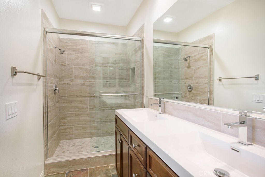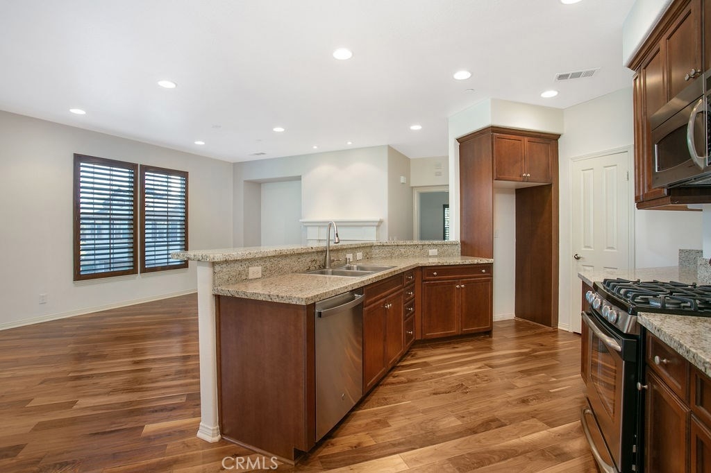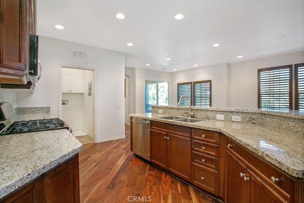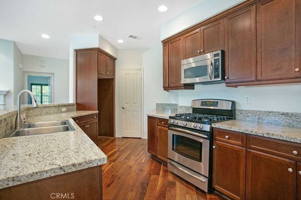 See virtual tour: https://youtu.be/3wOTLns2Jz0 This stunning Plan 1 Meriwether Carriage Unit offers 2 bedrooms and 2 baths in an expansive open layout of approximately 1300 square feet. Adorned with gleaming granite counter tops, richly stained cabinets, stainless steel appliances and beautiful hardwood floors, this Lennar beauty is hardly lived in and feels like a brand new home. Other amenities include a large kitchen peninsula perfect for entertaining, a walk-in pantry and a convenient inside laundry room. The floor plan is ideal with the two bedrooms on opposite sides of the home, offering privacy for all. The master shower has been recently remodeled with designer inspired materials and is gorgeous! The open concept great room features a gas fireplace and is open to the kitchen and large balcony, perfect for enjoying the Southern California weather while sitting outside or barbecuing. 15205 Linden Way is steps to Arlington Park, a rare location in the community where you will find a playground, sport court, picnic tables and greenbelts. Enjoy all the amenities that Columbus Square offers including Junior Olympic Swimming pool and spa, clubhouse, exercise room, parks and many HOA sponsored activities. Walk to the Village of Tustin Legacy shopping center, the District with Whole Foods and the soon to open Veteran’s Sports Park. Zoned for Heritage Elementary and soon to open Legacy Academy.