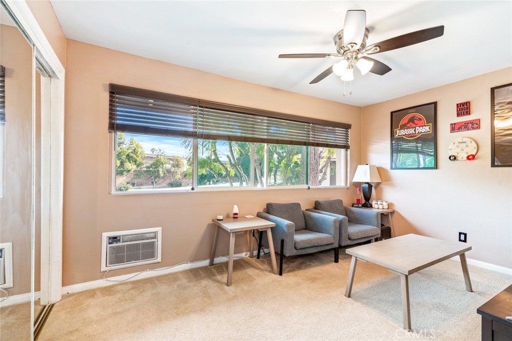Beautiful and cozy 2- story townhouse perfect for first time home buyers or investors to add to their rental portfolio. Located in the Tustin Village Community, this unit features 2 upstairs bedrooms with a shared full bathroom with dual sinks, and one half bath downstairs. The spacious living room offers plenty of natural light from the large patio sliders that leads out to the private enclosed patio.The traditional-style kitchen features granite countertops, stainless steel appliances, and an electric stove. Other notable features include fireplace, newer paint, recessed lights, newer dual paned windows, newer bedroom ceiling fans with adjustable lighting, newly renovated shower, and AC units installed in all the rooms. The unit comes with two assigned carports and community laundry. The well- maintained grounds in the park- like community, as well as being part of TUSTIN unified School District, are just some of the benefits that come with the property. HOA includes water, trash, two community pools, dog park, kids park and clubhouse.