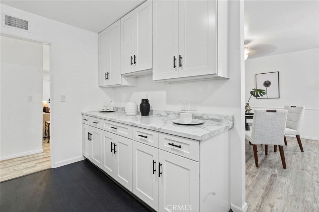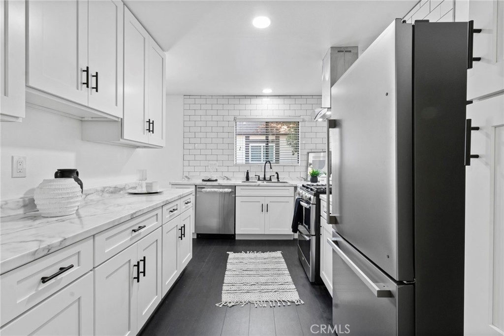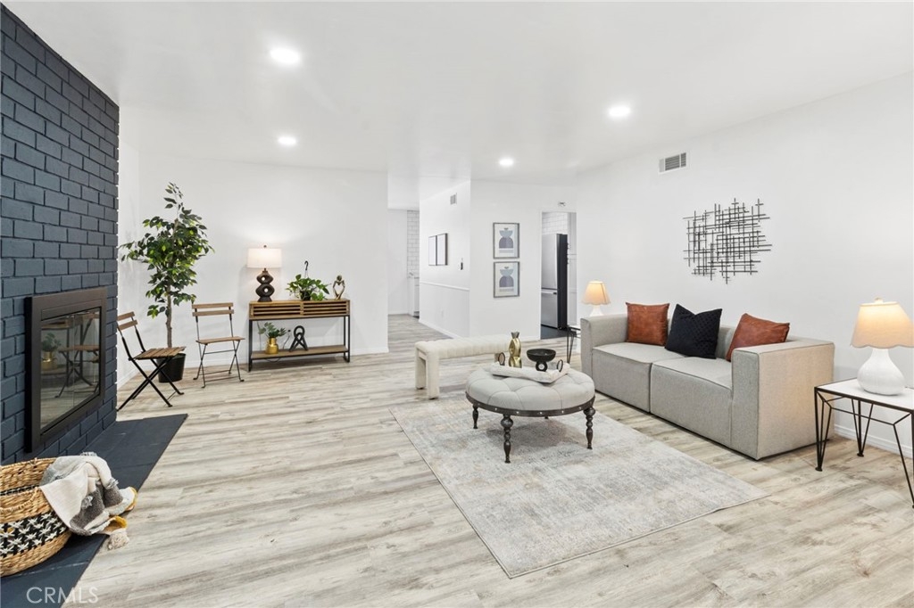 Discover this turn-key, second-level condo in the highly desirable Williamshire Community of Tustin, offering stunning pool and greenbelt views. Nestled among lush landscaping, this home provides a spacious, inviting living area complete with a cozy fireplace, perfect for relaxation. The open floor plan seamlessly integrates the living, dining, and kitchen areas, making it ideal for entertaining. The beautifully updated kitchen features stainless steel appliances, a NEST thermostat, recessed lighting, soft-close cabinets, a new sink, and new flooring. The primary suite serves as a peaceful retreat with a ceiling fan, walk-in closet, and a modern en-suite bathroom with double vanities. Two additional generously sized bedrooms share a stylishly updated bathroom. This home boasts new flooring throughout, a new range hood, refrigerator, dishwasher, brand new washer and dryer, central air with a 2021 A/C unit, and a recently installed heater in 2023. With numerous updates, this home is ready to move in! The FHA-approved Williamshire Community offers fantastic amenities, including a sparkling pool, clubhouse, and an exercise room, all within a gated and secure environment. Conveniently located near the 55 and 5 freeways, enjoy easy access to attractions such as the Santa Ana Zoo and Old Town Tustin. Complete with an attached 2-car garage and ample storage, this condo is a must-see!