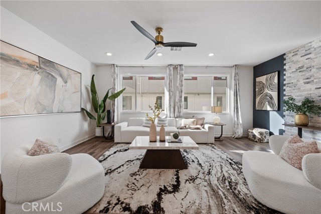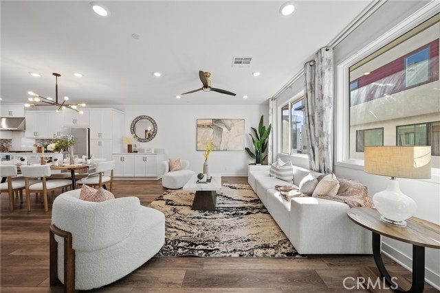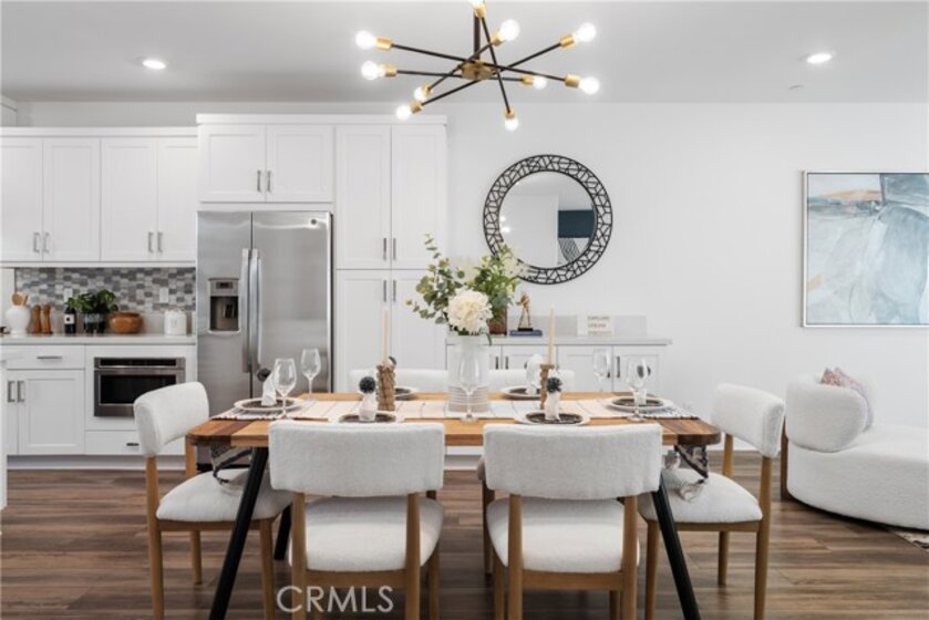 Welcome to this Modern tri-level townhome in Levity at Tustin Legacy! This upgraded 3 bed, 3 bath home features an open-concept main level with luxury vinyl plank flooring, white shaker cabinets, quartz countertops, custom backsplash, stainless steel appliances, and a large island perfect for entertaining. Enjoy fresh air and views from the private balcony. Additional highlights include a two-car garage, side-by-side laundry, and central A/C. Conveniently located near The District, Flight, parks, shopping, and top-rated schools.