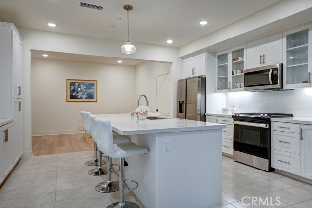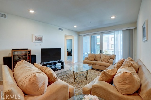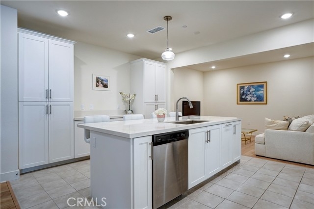 Welcome to The Landing at Tustin Legacy — a highly sought-after luxury condo community in the heart of Orange County. This move-in-ready residence is thoughtfully designed for effortless single-level living, offering 2 bedrooms, a den, 2 bathrooms, and a private oversized 2-car garage — all within a secured building featuring a welcoming lobby and convenient elevator access. Step inside to a bright, open-concept living space that flows seamlessly from the formal dining area to the gourmet kitchen. The oversized island is perfect for meal prep, serving, and bar seating for four. The kitchen showcases quartz countertops, an upgraded backsplash, sleek white cabinetry accented with satin nickel hardware, and glass-front cabinet doors — ideal for displaying your favorite dishware or collectibles. Additional highlights include smart home technology, recessed lighting, paid-off solar, a hardwired alarm system, and timeless LVP flooring in a neutral designer shade chosen by the sellers. Just off the family room, step onto an expansive covered patio deck (approx. 345 sq. ft.) — the perfect extension of your living space. Bathed in the gentle warmth of the morning sun, it’s an inviting spot to start your day with a cup of coffee or unwind in the evening. Both bedrooms are thoughtfully positioned in their own private wing, each with stylish modern bathrooms and walk-in closets. The primary suite features a spacious walk-in shower, while the versatile den offers the flexibility to serve as a third bedroom, home office, or creative space. At The Landing, you’ll enjoy resort-style amenities including a sparkling pool, BBQ area, firepit, lounge spaces, tennis court, pickleball, sport court, and community gathering areas. Conveniently located near premier shopping, dining, and entertainment — with easy access to major freeways — you’re just minutes from Irvine Spectrum, South Coast Plaza, and Disneyland. Easy Access to 5, 55, 133, 241, 261 & 405. Don’t miss your chance to experience modern luxury living at The Landing in Tustin Legacy — schedule your private showing today! (Click the 360 link for the full video tour.)