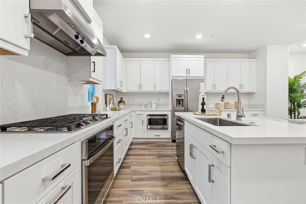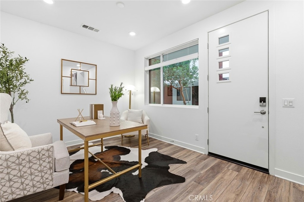 LOCATION! LOCATION! LOCATION! Almost brand new townhouse in Tustin Legacy. Built by Lennar in 2020, whole house has been upgraded with smart appliances, whole house wood flooring, sheer blinds and blackout blinds in all bedrooms. First Floor is spacious, second floor is spacious kitchen, living and dinning with balcony and walk in pantry. Beautiful shaker style white cabinet, upgraded Quartz counter tops throughout the kitchen and all bathrooms. Walking distance to " The District", The Whole Foods Market, Costco, Diamond Jamboree Plaza. The center location of Orange County. Great opportunity to own this premium location townhouse!