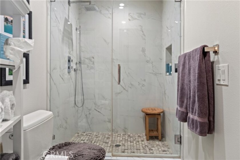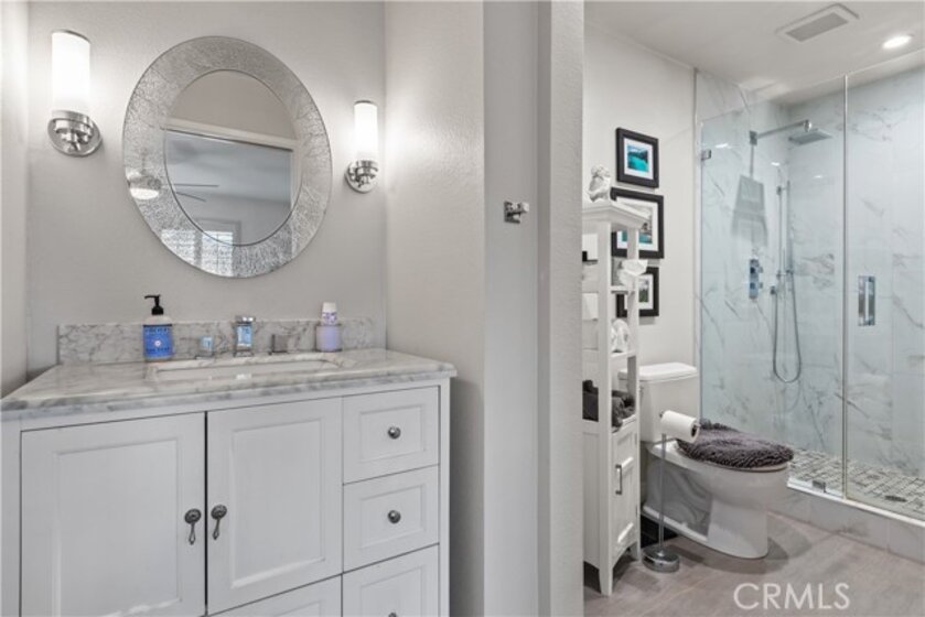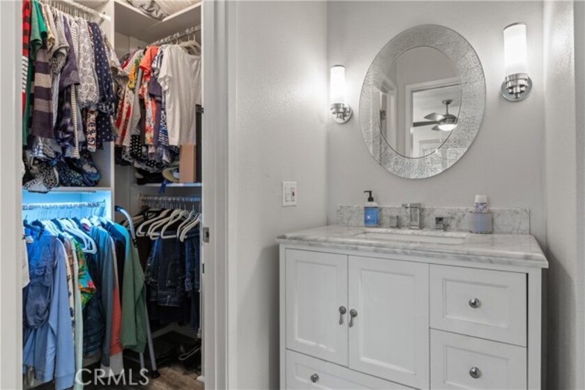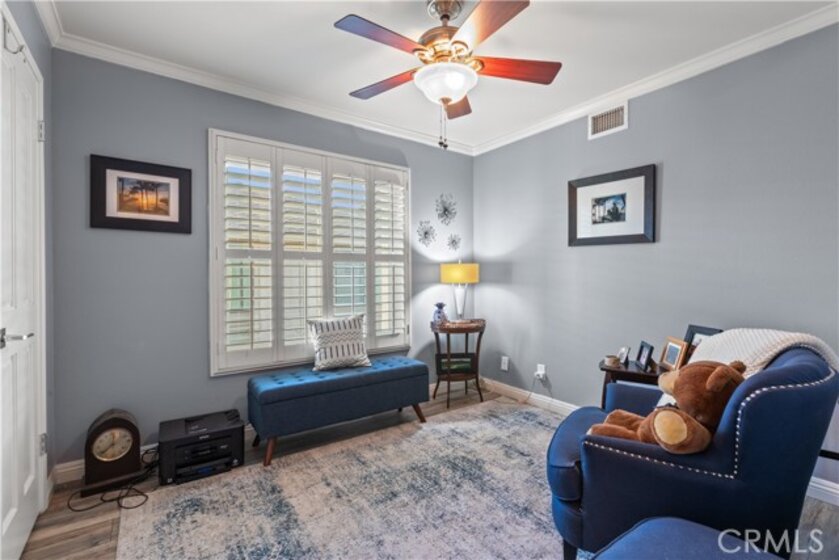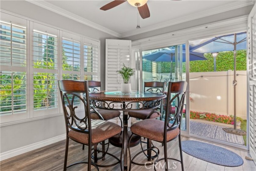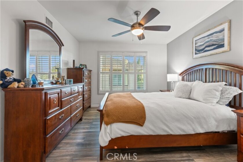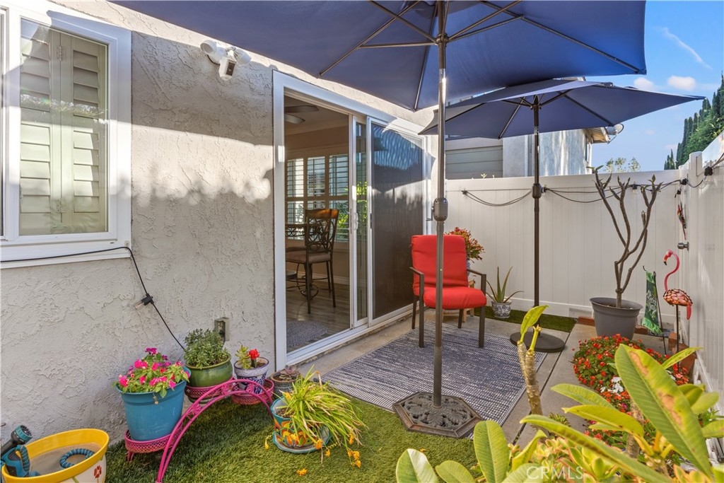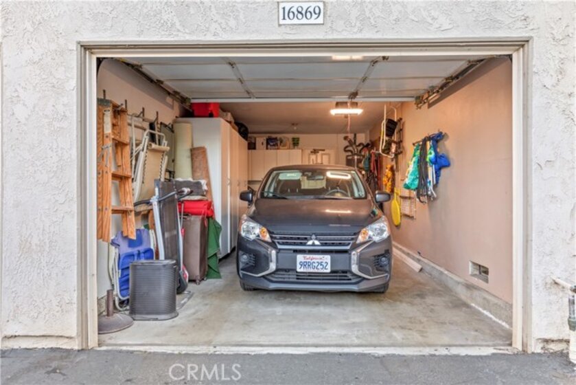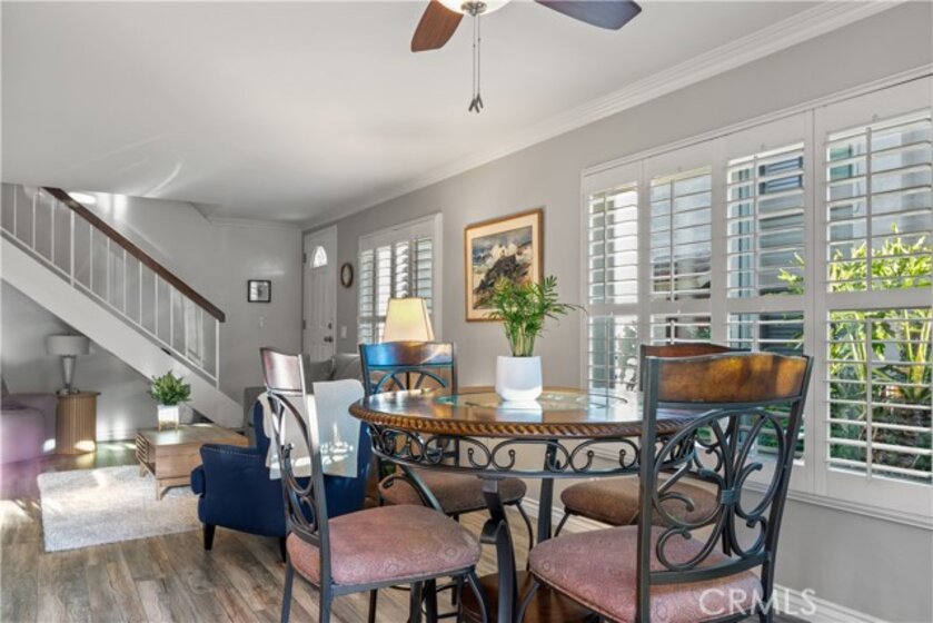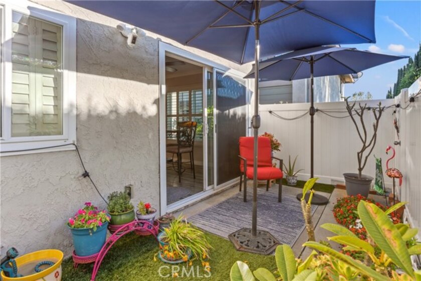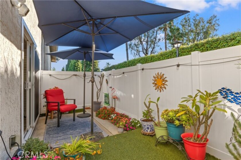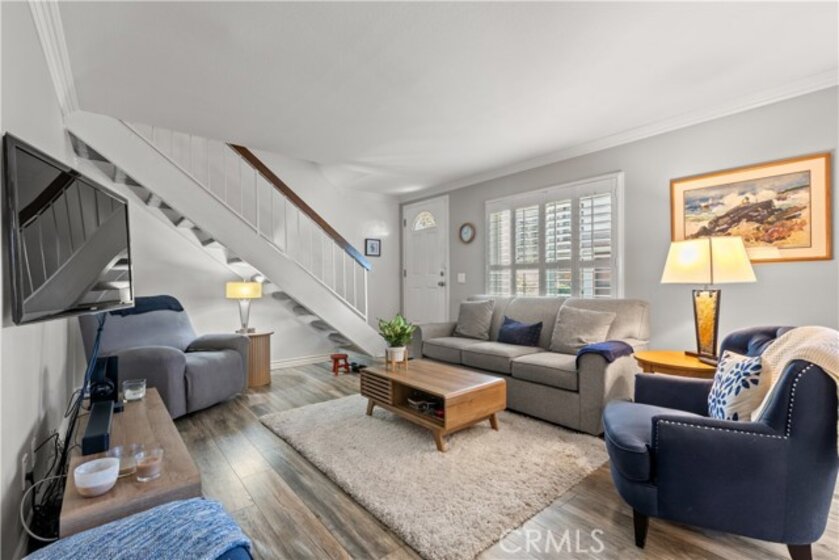 Welcome to this stunning, turnkey condominium nestled in the highly sought-after Briarcliff Village gated community, perfectly positioned in one of the best locations with no one above or below, attached on only one side offering added privacy. This light-filled home showcases pride of ownership throughout, featuring dual-pane windows adorned with elegant shutters, and beautiful laminate flooring that flows seamlessly through most of the home. The thoughtfully designed kitchen boasts rich wood cabinetry, granite countertops, stainless steel appliances, recessed lighting, and a charming window overlooking the lush private patio. Enjoy the convenience of direct garage access. Adjacent to the kitchen, the dining area opens via sliding doors to a serene outdoor retreat complete with vibrant flowers and low-maintenance artificial grass, ideal for relaxing or entertaining. The spacious living room is enhanced with crown molding and tall baseboards, creating a refined yet comfortable atmosphere. A stylishly updated powder room is conveniently located on the main level. Upstairs, both bedrooms feature crown molding, high baseboards, ceiling fans, and walk-in closets. The primary suite is a true sanctuary, highlighted by a fully renovated bathroom with a luxurious walk-in shower and a stunning waterfall showerhead. The custom-designed closet includes built-ins with integrated lighting for a boutique-like experience. Additional highlights include an upstairs hallway lined with ample storage cabinets, and a fully drywalled extra long garage equipped with laundry and an entire wall of storage cabinetry. Impeccably maintained and beautifully upgraded, this exceptional home truly has it all—style, comfort, and an unbeatable location. The community pool is a wonderful amenity for our California weather. Added bonus, seller has already paid the $800 HOA special assessment to cover Insurance Premiums. This is one you won’t want to miss!