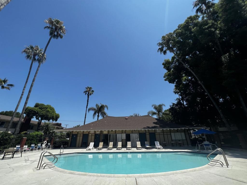 Lovely updated 3 bedroom, 2.5 bathroom townhome boasting 1,392 sqft of living space with an attached 2 car garage. Wood flooring through out and ceramic tile in the living room. Kitchen and bathroom counters with engineered quartz. Laundry room inside unit with dedicated room/space. Generous enclosed patio between home and garage gives private area to enjoy meals al fresco, a space to explore your green thumb, or barbecue all year round. Other features include AC throughout the two-story unit, updated electrical panel and piping at bathroom sink, newer water heater, newer garage door, newer stainless steel dishwasher, and wooden shutter treatments both floors. Master bedroom expanded to create an oversized bedroom with retreat area and bath en suite. Sizable secondary bedrooms with wall closets for organization. Complex has a gorgeous pool and clubhouse; property maintained lush with greenbelt and trees. Near all convenience items: market, shopping, eating, entertainment, and freeway.