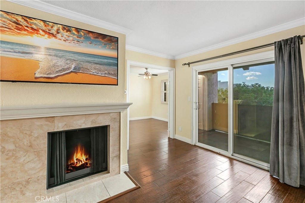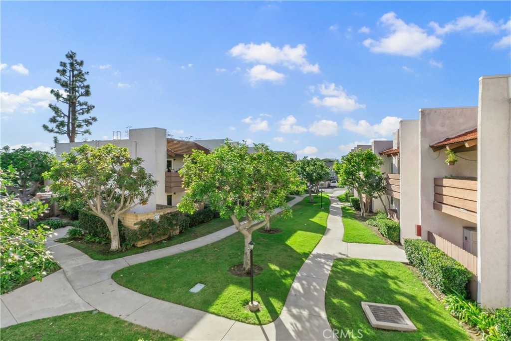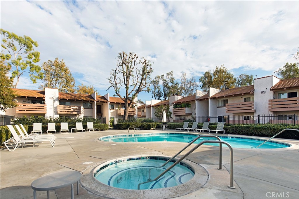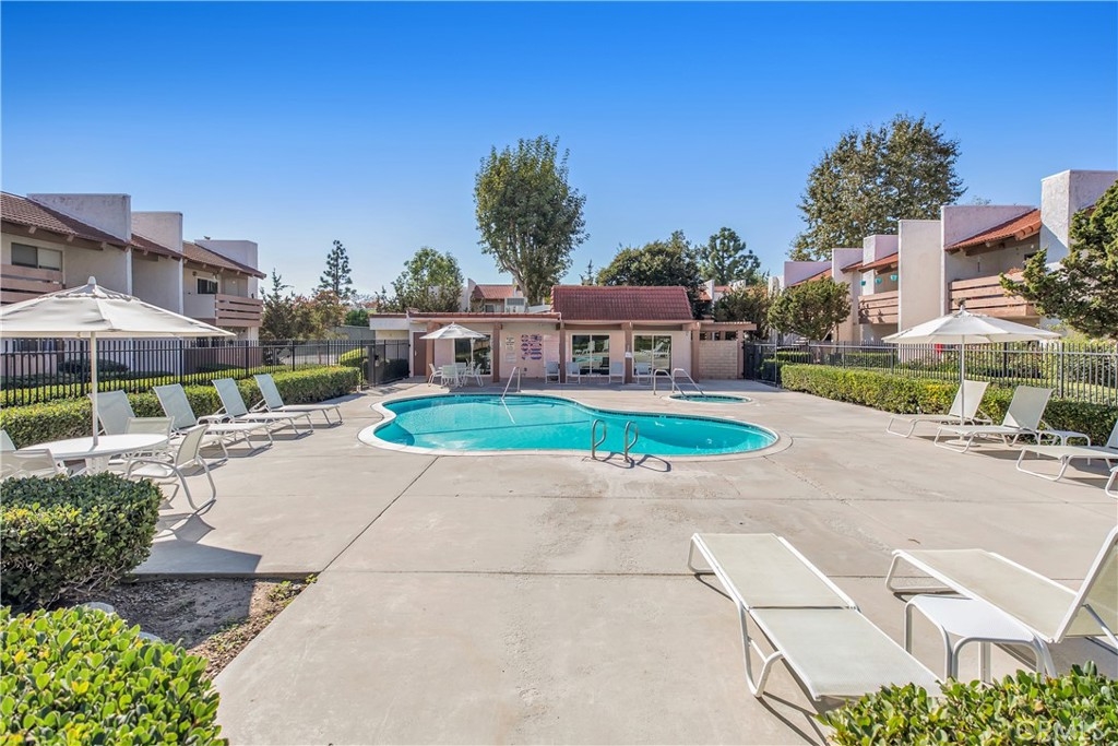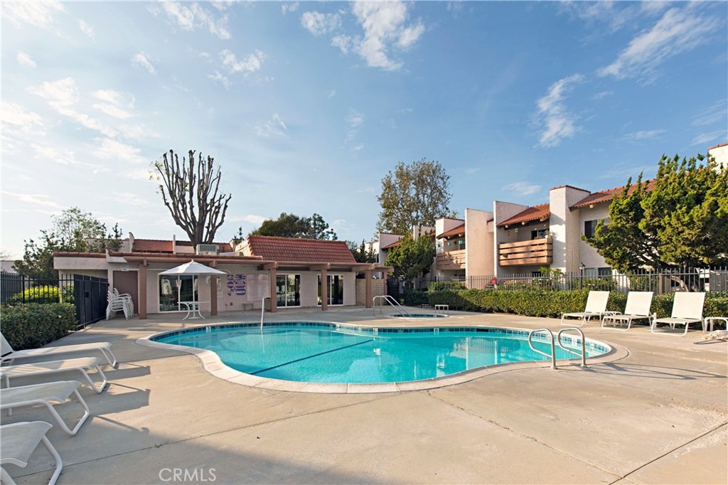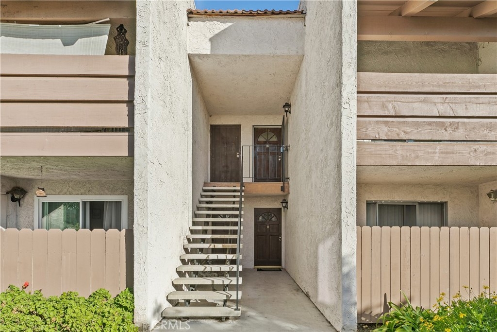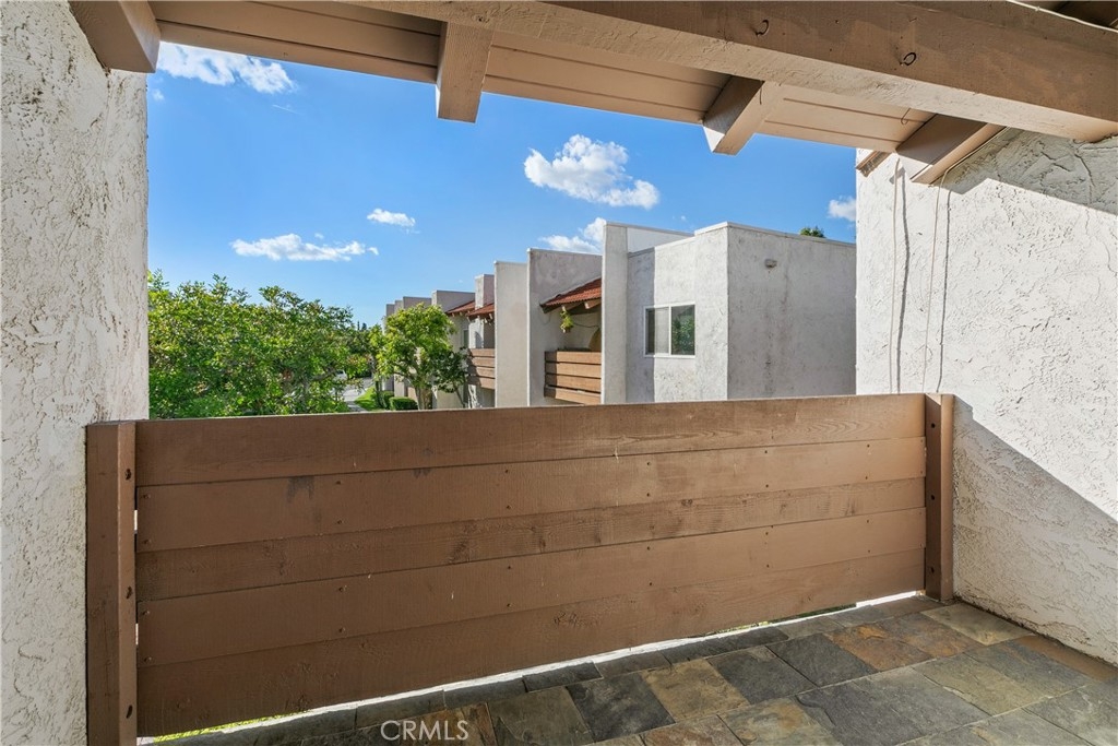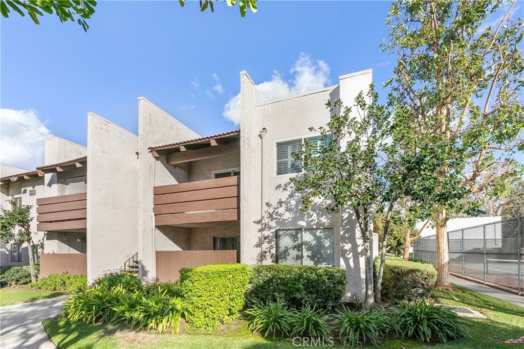 This quaint, remodeled 2 bed, 1 bath Quail Meadows condo is sure to captivate you from the minute you walk through the door. Situated on the 2nd floor facing the community greenbelt, you'll love the prime positioning of this end-unit condo as it does not look directly into another unit or building and is in close proximity to the community pool. Engineered hardwood floors grace the space, A travertine fireplace, granite counters, plantation shutters, and crown moulding give this condo an upscale touch. The open floor plan is ideal with the remodeled kitchen open to the living room with sliding doors opening to a balcony with unobstructed views of the community greenbelt. Enjoy the custom cabinetry, granite counters, stainless steel appliances, breakfast bar and nook the kitchen has to offer. Both bedrooms are generous sizes and connected to a jack-and-jill bath that has been remodeled with travertine tile and granite counters. Community amenities include: pool/spa, tennis courts, clubhouse, and laundry facilities. Located just off the 55 FWY and walking distance to local shopping and dining.
