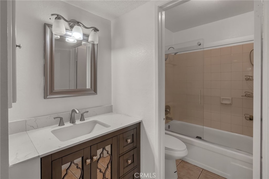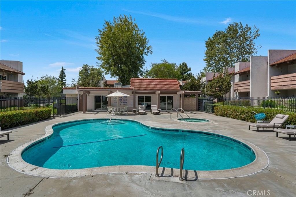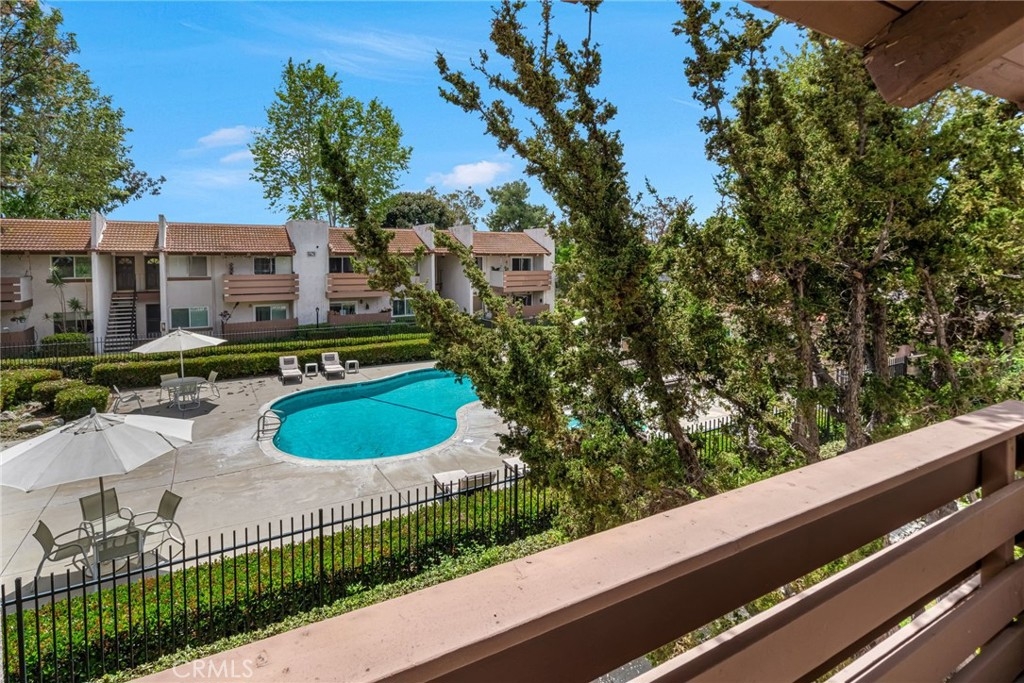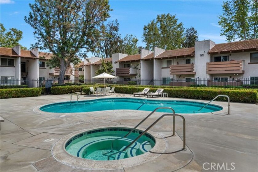 Welcome home! This move-in ready second-floor unit offers the privacy of having no neighbors above and beautiful pool views from the primary suite. The freshly painted, open-concept living space is complemented by stainless steel appliances, a walk-in closet, and central heating and air conditioning. A designated garage parking space adds everyday convenience. Ideally located between three major freeways, this home provides easy access to nearby parks, restaurants, and schools. The well-maintained community features a variety of amenities, including a pool and spa, community room, outdoor shower, tennis courts, and more making it a perfect place to live and relax.
