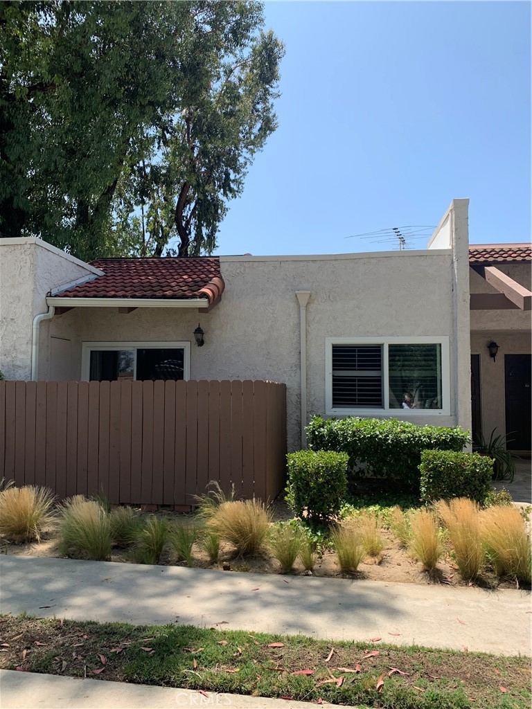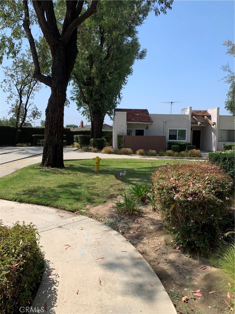 PRIME LOCATION IN THIS COTTAGE, BUNGALOW STYLE CONDO. Single story no one above or below and in back. END UNIT. Located next to shuffle board and steps to Community laundry facilities, parking structure has open parking on upper level and gated area is assigned parking. Private and surrounded by trees and lawn area. Community Association has Fenced Tennis Court, Community Pool. "A Diamond in the rough" (needs paint and carpet, some cosmetic) but a some major items renovated. Kitchen cabinets have been replaced, stainless steel sink and Whirlpool Dishwasher, granite counters. Plantation shutters added, MBR shower has been retiled, Dining Area has a grandfathered window added for lots of light only unit in tract with this window. Two Private Patios one in front and one in back with sliding doors. Hard surface flooring except bedrooms need carpet. Fireplace in Living Room. Priced to sell below recent comps. Homeowner Association Dues include Water, and trash and outside lighting.