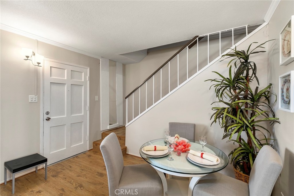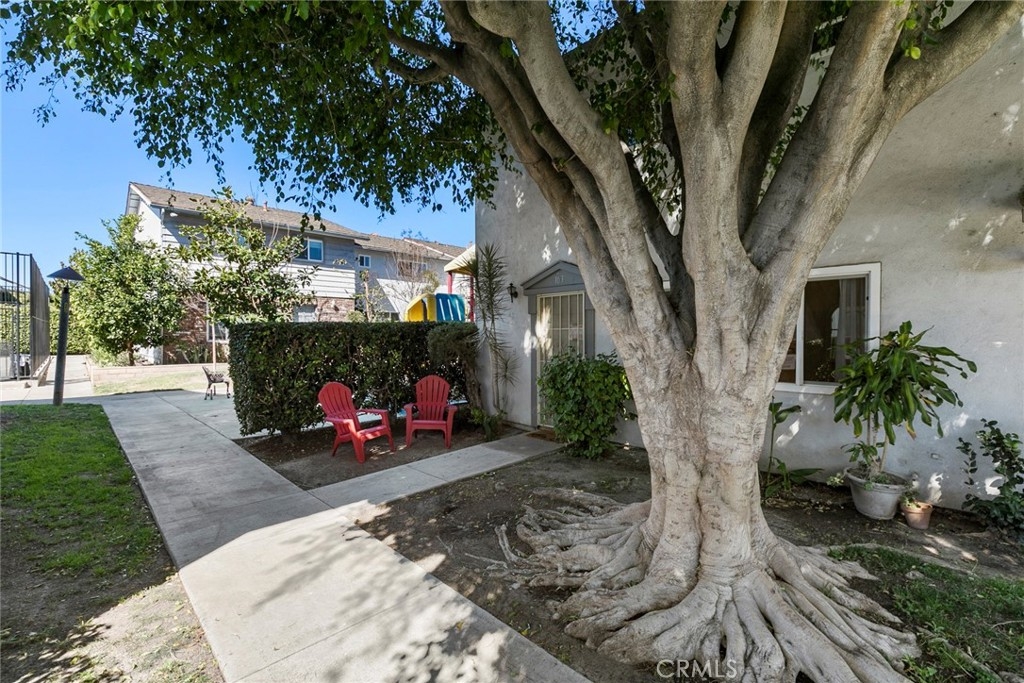 Welcome home to the Tustin Imperial Townhomes in a superb central OC location. 1777 Mitchell #103 enjoys a premium interior location within this well maintained community and it is an END UNIT! FHA/VA financing is welcomed on this PUD property. A freshly painted interior awaits with warm tone laminate wood flooring throughout all living areas and bedrooms, ceramic tile floors are found in kitchen, laundry and bathrooms. Dual paned windows throughout the home in addition to ceiling fans in all bedrooms and recessed lighting. Each bedroom has it's own newer wall/window AC unit plus the home has central heating. Step inside to the comfortable living room with large window and custom wall lighting sconces. The kitchen has newer cabinetry and granite counters, a double french patio door leads to the back patio/carport area. The attached one car garage is fully drywalled and even has tile floors! A large storage closet is within the garage too. In addition to the enclosed private garage, you have a gated carport PLUS a parking tag for one additional unassigned parking space. Downstairs laundry and a 1/2 bath are off the kitchen. Upstairs you will find comfortably sized bedrooms and a primary suite with en-suite 3/4 bathroom. The community offers POOL, playground, sports court and the monthly dues include exterior maintenance on the building & roof plus insurance on the building. Come and enjoy a great location near fwys, schools & shopping all at an affordable price in coveted OC!