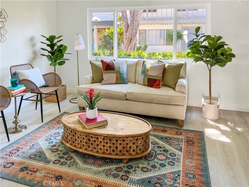 BACK ON THE MARKET! Located in the lovely community of Tustin Imperial, this beautiful 3 bedroom,3 bath condo has been completely refreshed with new water resistant laminate floors, designer paint and new dual paned energy efficient windows. Getting ready for summer, the seller has just installed a brand new HVAC SYSTEM COMPLETE WITH AC,HEATER AND DUCTWORK! The living room and kitchen have new recessed lights as well. Cooking will be easy with a recently installed stainless Microwave as well as a new range/oven . All the bedrooms have updated ceiling fans and mirrored closet doors. Brand new Panasonic WhisperChoice Exhaust fans are in 2 bathrooms. The whole house is protected by the Blink security system. Imagine a condo with not 1, but 3 parking spaces: a 1 car attached garage, 1 carport and 1 community parking space! Exiting through French doors in the kitchen, the private back patio is a great spot to relax and enjoy the sun or perhaps have a family BBQ. The community features 2 pools, a clubhouse, playground & basketball/sports court. With its great centralized location Tustin Imperial is close to shopping , local eateries and the elementary school is just down the street. There is easy access to the 5 and 55 FWY too! Don't miss this opportunity to own a 3 bedroom home with 3 parking spaces and all at a great value.