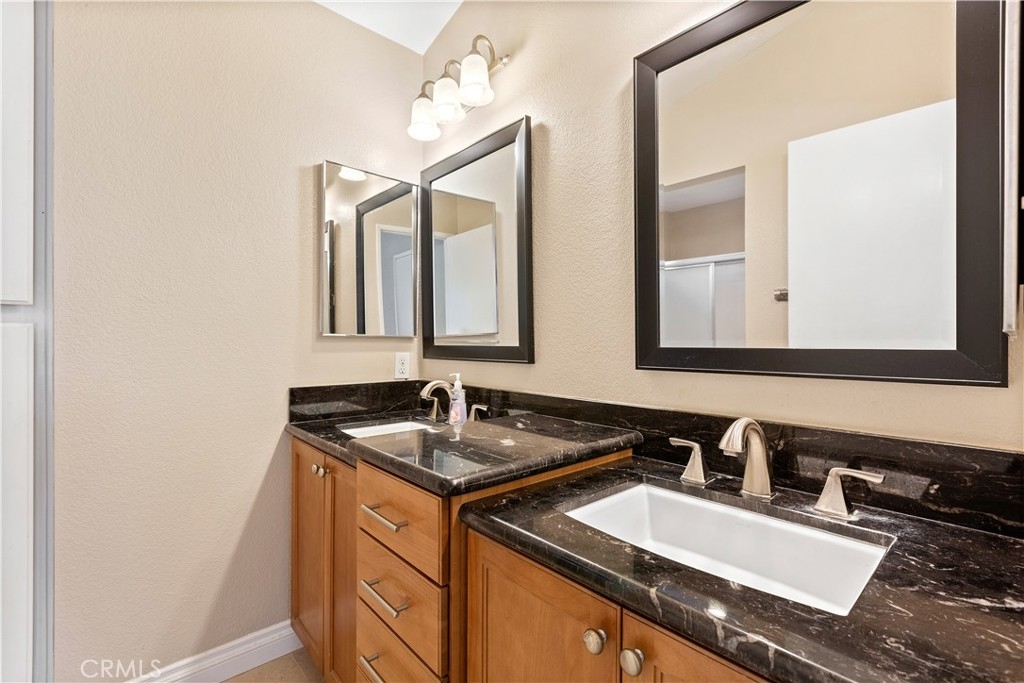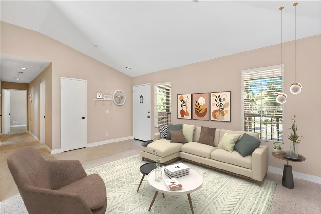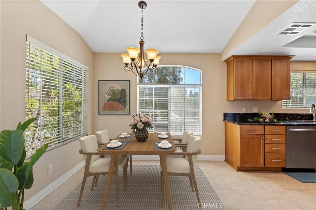 Price Reduction and Priced to Sell!! This move-in ready corner unit condominium in the popular Shadow Canyon community in Tustin Ranch welcomes you with its vaulted ceilings and open layout. The living space with an abundance of light flows naturally into the dining area and kitchen featuring custom cabinets and granite countertops. Down the hallway, you'll find two spacious bedrooms. The master bedroom boasts a walk-in closet along with an en suite bathroom and dual sinks. Other notable features include laundry in unit, granite fireplace, and private front porch. Just below, you'll find the extra long 1-car garage with ample room for additional storage and steps away is the second assigned covered parking. HOA offers 2 pools and spas, gym, clubhouse along with Tennis Courts, BBQ and more! Conveniently located within walking distance to Tustin Ranch Golf Club and close proximity to the many shops and restaurants at The Marketplace and The District. FHA & VA Approved! Photos are digitally staged.