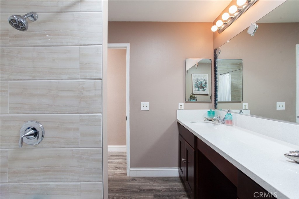 Nestled in the exclusive community of Tustin Park Villas, 1881 Mitchell is a beautiful turnkey, upgraded 3 bedroom 2 bath condo that provides the privacy and comfort of single-family living, without all the maintenance. The home’s highly sought-after and location and single story floor plan with no one above, has easy access to the 5 and 55 freeways, and is only a short ride away from major employers and schools. From the moment you enter the home, you are welcomed by an open living room area, complete with a cozy fireplace, and updated beautiful laminate floors throughout the entire home. Take a trip straight down the hall and you will find the kitchen with granite countertops and updated cabinets which connects to the living room through a spacious, well lit dining area. Venture further into the home and you will find 3 bedrooms, all matching the color scheme and gorgeous flooring that is boasted throughout the rest of this modern home. Enjoy the luxury of 2 fully updated bathrooms, both of which have a vanity area and extra counter space. Spend your days relaxing by the complex’s large pool, or simply enjoy a BBQ in the home’s private patio and garden area. Excellent school district and gated for your safety. Three bedroom properties at this price don’t last, make your move ASAP.
