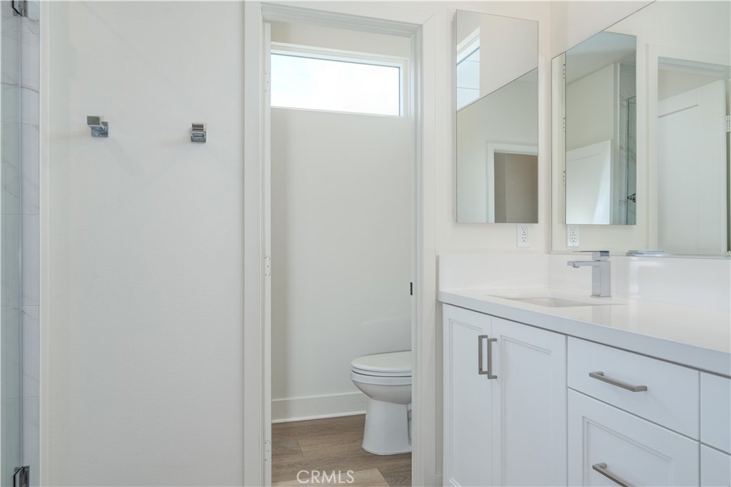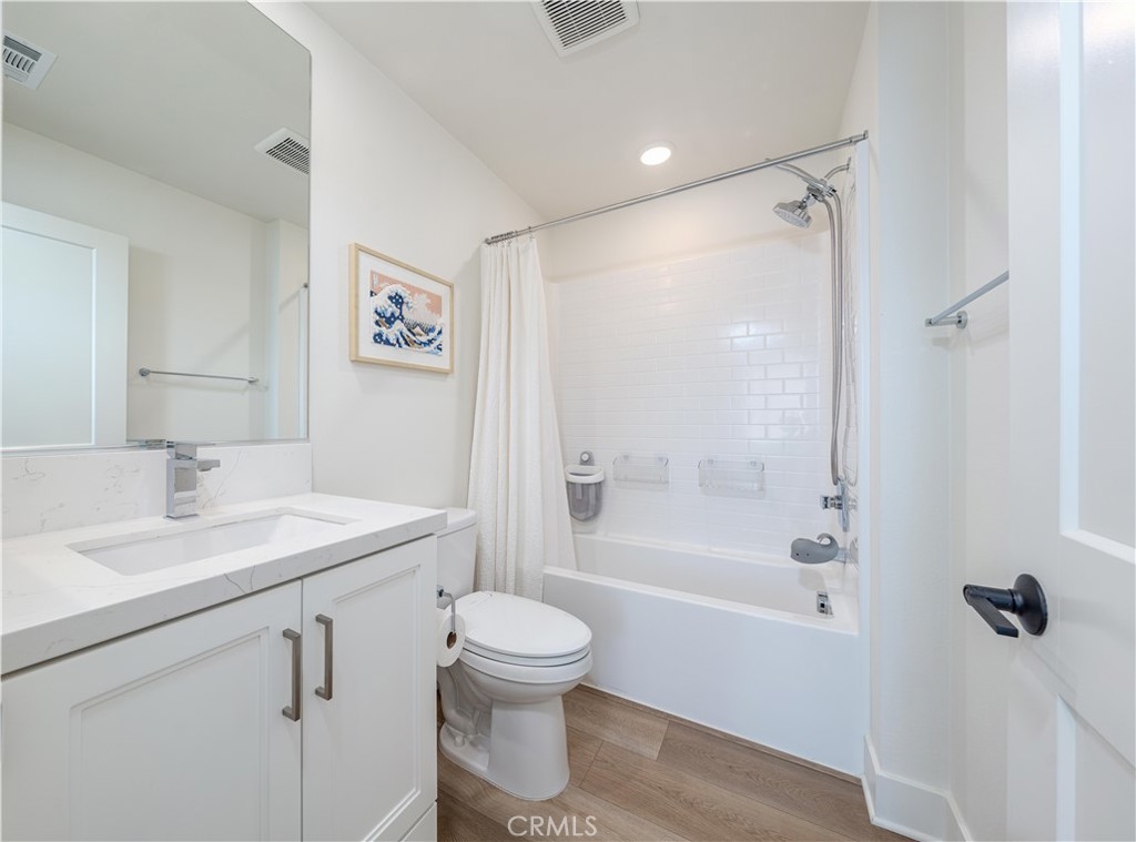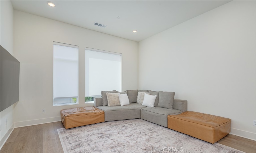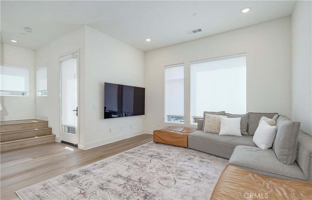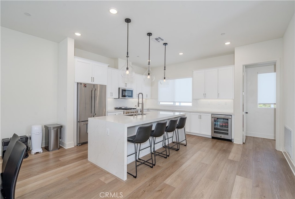 Welcome to the Luna at The Landing community, where unparalleled design harmonizes with upscale living upgrades to create a truly remarkable home. This stunning 4-bedroom, 3.5-bathroom residence offers three thoughtfully designed levels of luxurious living space. As you step into the first level, you're welcomed by a beautifully appointed main floor bedroom that boasts an ensuite bathroom and a spacious walk-in closet. This level also features a convenient 2-car attached garage with storage options to keep your living space organized. Ascend to the second level, and you'll find a living area that exudes modern sophistication. The gourmet kitchen serves as the heart of this home, showcasing European-style cabinetry with sleek shaker-style doors, adjustable shelving with LED cabinet lighting, and luxurious quartz countertops with a custom backsplash. Gather around the waterfall kitchen island and enjoy the convenience of a spacious walk-in storage pantry. This level also features an expansive great room and dining area designed for effortless entertaining, along with a half bathroom and a private deck for unwinding from the day. The third level offers a tranquil sanctuary, highlighted by a sumptuous primary bedroom that boasts an ensuite bathroom featuring dual sinks and a luxurious walk-in shower. A large walk-in closet provides ample space for all your wardrobe needs. In addition, two well-appointed bedrooms and a stylish full bathroom, along with a laundry room, complete this floor. Other exquisite upgrades include LVP flooring, high-end Jenn Air appliances—including a dishwasher, range, and beverage fridge—and cabinets throughout with upgraded hardware, including soft-close doors & drawers, designer window shades, epoxy flooring in the garage and a water softener system. Designed with both technology and energy efficiency in mind, this home features LED lighting throughout, high-speed data connections, a smart thermostat, pre-plumbing for electric vehicle charging, and a paid-off solar system. The community itself offers an array of amenities, including a sparkling pool and spa with a relaxing lounging area, basketball and pickleball courts, a clubhouse for gatherings, and a dog run for your furry companions. All of this is conveniently located near picturesque community parks and scenic trails, with easy access to The District shopping center, Whole Foods, UCI, John Wayne Airport, major freeways, and the highly rated Tustin Unified School District.