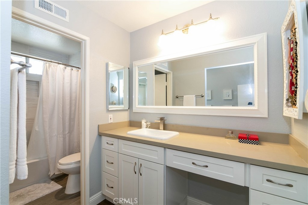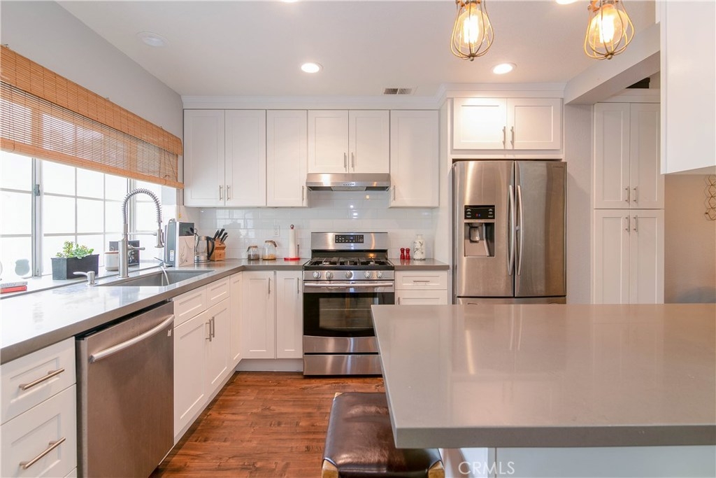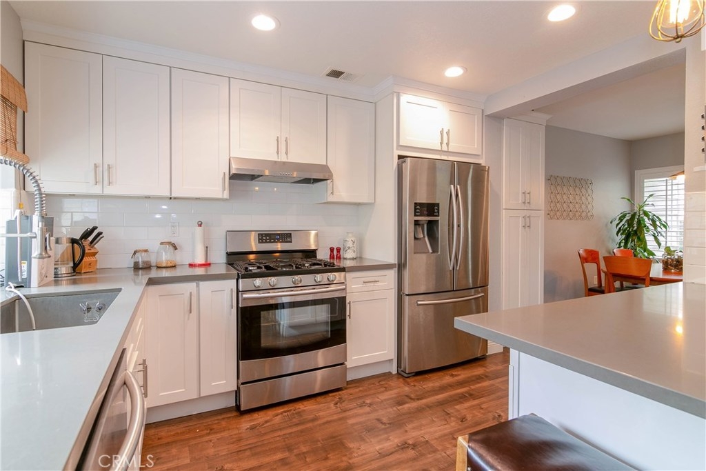 Price reduced...Welcome to the highly desirable Sycamore Glen Condo Complex, Special assessment is only $195/yr. low HOA fee. Completed upgraded modern townhouse with 2 car garage and drive way. Just pictures show how this home stands out from the rest. Spacious 2 MASTER Bedrooms upstairs with 2 full Bath and Additional Bath downstairs. Entire kitchen and all baths renovated, new cabinets, high quality stone counter, and cozy island for breakfast, stainless steel sink and faucets, stainless appliances, recess lights, wood shutters, laminate wood floors throughout the home. Upstairs Laundry makes it convenient. Master bath has Double sinks and Shower/Tub combo. Has Formal Dining Area. Association has two Heated Pools/Spas. This community has a private entrance to El Camino Park that is adjacent to the homes. This complex is centrally located to Toll Road and 55/5 Freeways, Shopping, Dining. Nice Camino Real Park next door to complex. this property has award Winning schools.This well upgraded and Maintained home can be all Yours.