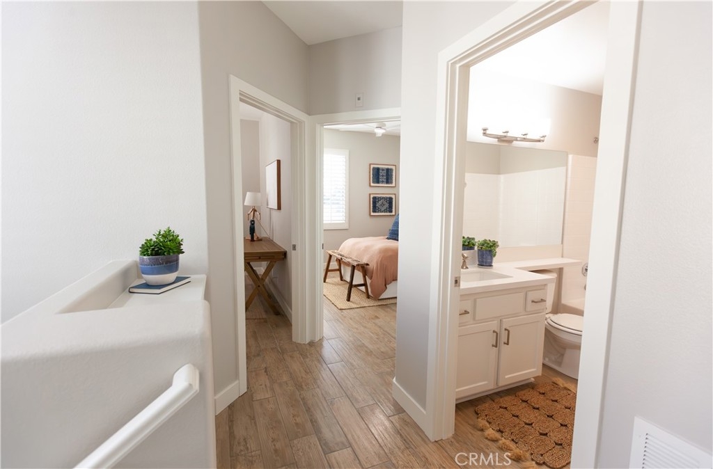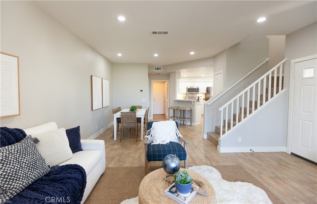 Set within the desirable Orchards community, this beautifully updated corner-unit townhome offers a rare blend of natural light, thoughtful design, and tranquil golf course views. Positioned to capture greenery and open skies, the home feels both peaceful and connected—an ideal balance of serenity and convenience. The main living spaces unfold with a bright, open floor plan with a welcoming living room centered around a cozy fireplace. Oversized windows frame lush views and allow sunlight to pour in throughout the day, creating an inviting, airy atmosphere. The kitchen is crisp and functional, featuring clean white cabinetry, modern finishes, and seamless flow into the dining area—perfect for everyday living and easy entertaining. All three bedrooms are thoughtfully located upstairs, offering separation from the main living areas. The primary suite feels calm and comfortable, with generous proportions, ample closet space, and a refreshed en-suite bath. Secondary bedrooms are light-filled and versatile—ideal for guests, a home office, or growing households. Additional highlights include an attached two-car garage with laundry, central air and heat, and access to community amenities including a pool, spa, tennis courts, and beautifully maintained grounds. With its prime location near the Tustin Marketplace, Irvine Marketplace, and The District, plus easy access to major freeways and toll roads, this home delivers effortless living in one of Tustin’s most sought-after communities. A rare opportunity to enjoy golf course views, modern updates, and a turnkey lifestyle in the heart of Tustin Ranch.