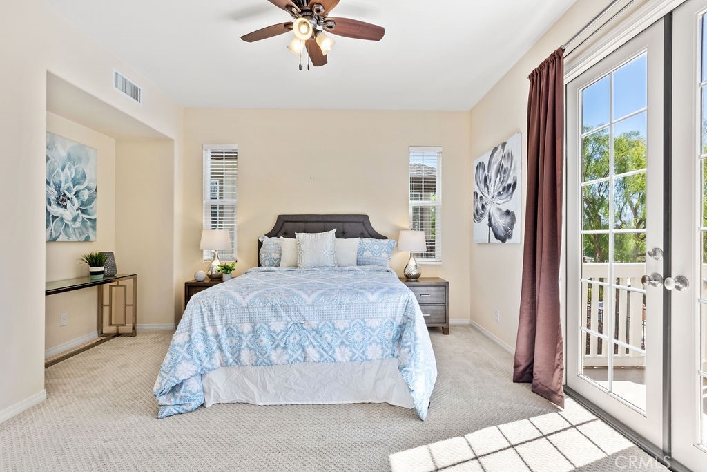 Gorgeous home in private interior location within the Tustin Field community. Steps from the community pool, clubhouse, playground and picnic shelters with views of the pool and lush mature greenery. The home features four bedrooms, four full bathrooms, as well as study/tech nooks and tons of space within 2213 spacious square feet. At the moment you approach this wonderful home, you are greeted by the welcoming slate tiled patio. Enter the front door and you will immediately feel at home in the cozy living room with beautiful hardwood flooring, a fireplace and built-in shelving, inviting dining room and upgraded kitchen with stainless appliances and beautiful tile backsplash. Also on the main level is a bedroom/office, a full bathroom and access to the two-car garage. Featured on the second level is a study/tech nook with additional cabinets, as well as the spacious master bedroom with french doors and a balcony overlooking the pool. The large en-suite bathroom features a luxurious spa tub, oversized shower, dual vanities, separate water closet and a big walk-in closet. Also on the second level is the laundry room and the third bedroom with an en-suite bathroom. On the top level is a large study nook with lots of cabinetry, and a huge bedroom which could serve as a second master bedroom with an en-suite bathroom, walk-in closet and views of Saddleback Mountain. Additional luxurious touches throughout include ceiling fans in all bedrooms, internet and cable wiring throughout, and wired for sound in the living room. Conveniently located with easy access to the 5 freeway, the 261 Toll Road and The District shopping center, this gorgeous home is located within the Irvine school district.