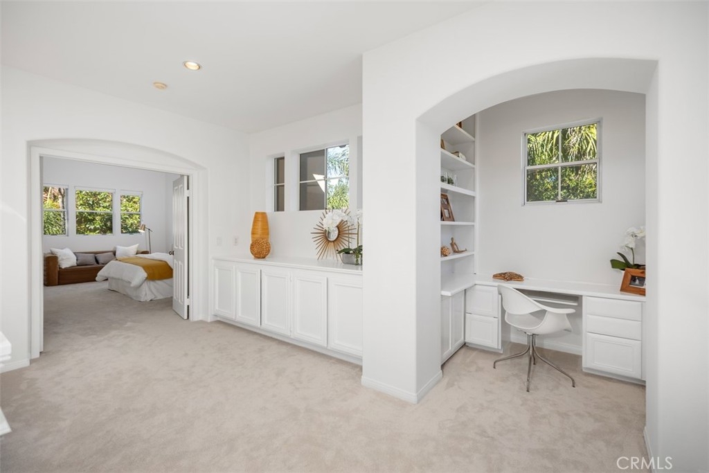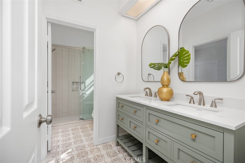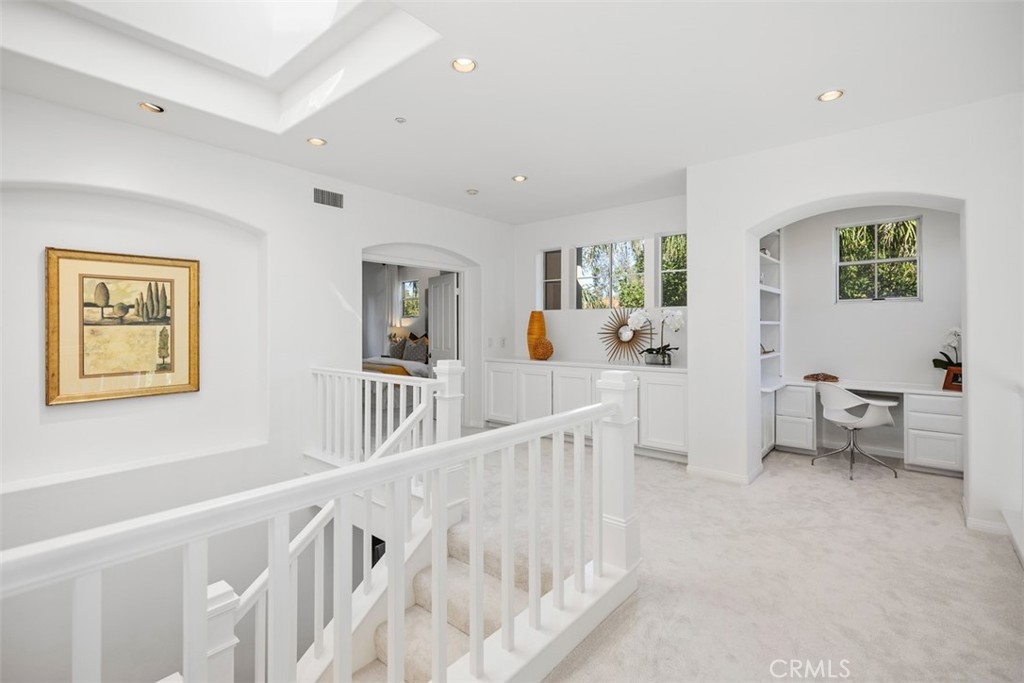 Who says you can't have it all? Rarely does a home at this price point offer as much scale and versatility in Tustin Ranch. Tucked away in the gated community of Corte Villa, this end-unit, ~2420sf home feels remarkably private and open with its high ceilings, big windows, and bright skylight. The layout is incredibly functional, featuring 3 spacious bedrooms, 2.5 bathrooms plus a flexible downstairs office/den that’s perfect for anyone working from home or in need of a private retreat. The entire interior has been refreshed with new flooring, new paint and beautifully remodeled bathrooms that offer a clean, modern aesthetic. You’ll love the updated kitchen with white shaker style soft close cabinetry, stainless steel appliances and is open to a breakfast nook ideal for everyday dining. Both the breakfast nook and living room provide access to the wrap around patio with low maintenance tile and landscaping. Upstairs is the spacious primary suite featuring double closets (one of which is walk-in) and oversized, newly remodeled bathroom with both a walk-in shower and separate tub. The two secondary bedrooms are jack-and-jill, sharing their own remodeled bathroom with double vanities. In addition, there is an upstairs tech nook where young ones can do schoolwork without having to repurpose a bedroom! Residents of Corte Villa have access to a community pool, spa, and tennis court and benefit from all the luxuries and conveniences Tustin Ranch has to offer. This is a move-in-ready opportunity to live in a secure, well-maintained community just minutes from top rated public schools, shopping, employment centers and freeways.