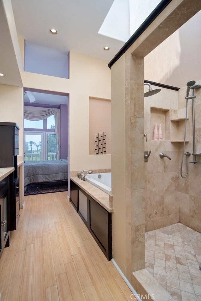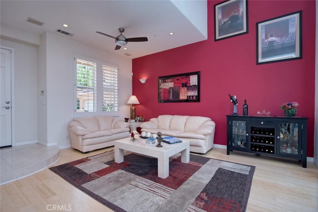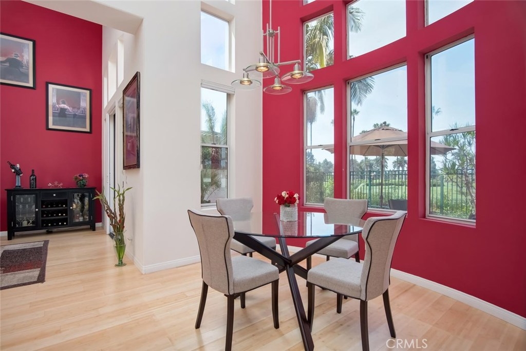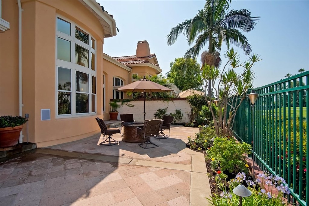 This highly desirable home awaits you in one of the most prestigious and coveted gated neighborhoods in all of Tustin Ranch. One of the VERY best Golf Course View homes in “Corte Villa”. Overlooking Tustin Ranch golf course with waterfalls, lake views and private golf course access all from your back yard! This beautifully remodeled light and bright home features 2 spacious master suites, 2.5 remodeled bathrooms and a permitted addition office/loft with built-ins. Beautiful Bamboo Wood and Marble flooring throughout. Cathedral ceiling in formal dining and living room with views of the golf course and a romantic fireplace. Gourmet kitchen offers high-end appliances, built-in refrigerator, dishwasher, oven, microwave and beautiful custom cabinets. Luxurious master suite awaits to relax and rejuvenate you, remodeled with beautiful travertine, double sinks, shower with dual shower heads, oversized soaking jet tub, large walk-in closets with built-in organizers. Plantation Shutters, double pane windows, oversized laundry room with built-in Cabinets and 2 car attached garage with built in storage. Entertain friends and family in style in your gorgeous backyard with built-in BBQ and tranquil view! Close to world class shopping & dinning at “Tustin Market Place” ,“The District” and more. Award winning Tustin school district. Walking distance to Ladera Elementary, pioneer middle school and Short drive to Beckman High School. This prime property won’t last and is sure to please!