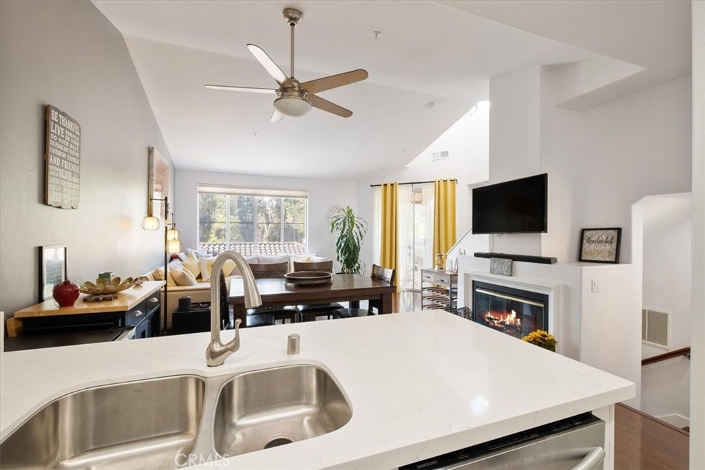 Upgrade your life now with this move-in ready two bedroom townhome situated in the highly desirable Cantada Community in Tustin Ranch. Upon entering, the inviting living/dining area with vaulted ceilings and a cozy gas fireplace will immediately draw you in. The wood floors and ample natural light continue from the updated kitchen and living area to the large master bedroom with a walk-in closet. The master bath has a dual vanity, a glass-enclosed shower in tub, private commode, and tons of storage. Upstairs is a large loft-style bedroom that could be perfect as a home office, a guest bedroom, or an entertainment room. Laundry hookups for washer and dryer are located conveniently in the garage, and the beautiful private patio adds outdoor living space with privacy and tranquility. This property is walking distance to award-winning schools and several expansive local parks where you can enjoy hiking, biking and horseback riding. The Tustin Marketplace, and other popular shopping, dining and entertainment destinations are also only minutes away. Don't wait, make it yours today!!