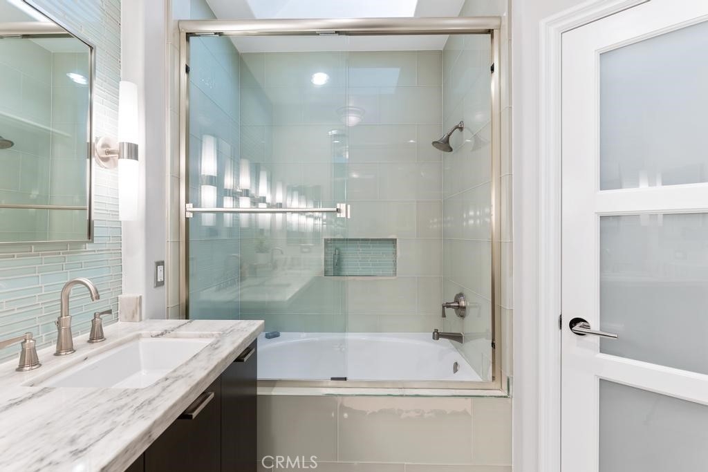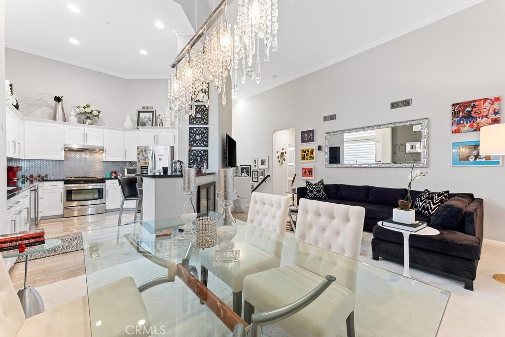 One of a kind upgraded condo in the exclusive community of Cantada, where you are surrounded by multi-million-dollar homes and estates. The is the much sought-after Castanet model, where conveniently most everything is on one level. Kitchen is upgraded in white cabinets, granite counter tops and a luxurious metallic finish mosaic tile back splash. The kitchen includes all stainless-steel luxury appliances including a built-in wine cooler. The kitchen also has a convenient breakfast bar, with makes for easy informal meals or add more seating on a larger gathering, as it faces towards the formal dining room, so no-one is left out of the party. The windows are dressed to impress with planation shutters or silhouette blinds. The upgraded millwork is second to none with grand crown molding, 6” base molding and an exquisite casement molding around windows and doors. The interior doors are truly unique 3 lite French doors with frosted glass, which allow for privacy, but still let all the light come through. The all the door hardware has a luxurious brushed finish. The living and dining room has soaring ceilings which adds an inviting light and airy feeling. The living room has a fireplace and an ingenious built in entertaining system cabinet with frosted glass. The master suite is fit for a queen, with a designer accent wall and TV in the bed area and the master bath is equipped with an espresso finished dual sink vanity with premium granite tops, custom mirrors and mirror lights and an impressive glass tile back splash that goes all the way to the ceiling. There is even an expanding privacy divider to close off the bathroom area from the bedroom when needed. At the ground level, you have a full-sized laundry room and direct access to the garage, and a convenient generously sized storage closet. Enjoy meals alfresco, with the large balcony located right next to the dining room with wonderful views of the trees and green belt. Enjoy all the local amenities that North Tustin Ranch offers, like hiking or riding the peters Canyon Trail and head either to the Ocean or the Mountains, pioneer road park, cedar grove park or just a little further citrus ranch park, with a view pavilion of the mountains or Catalina Island.