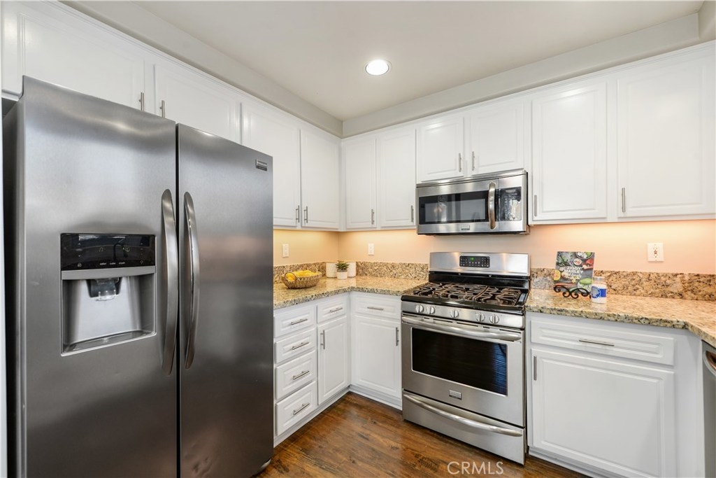 **SEE OUR 3-D VIRTUAL TOUR!!** Beautiful END UNIT Townhome located in the quiet Cantada community of Tustin Ranch. VERY PRIVATE with no one above or below you! Enter through the DIRECT-ACCESS GARAGE and up to the main level which has an open and inviting living area with SOARING CEILINGS, cozy fireplace and large sliding doors to the spacious and PRIVATE BALCONY. The living room seamlessly flows to the dining area and to the OPEN KITCHEN. Updated Chef’s kitchen with fresh white cabinets, granite countertops, and stainless steel appliances. Also located on this level is the generously sized 2nd bedroom adjacent to the FULL 2nd bathroom and LAUNDRY ROOM. Up to the next level is the OFFICE NOOK with built-in desk located just outside the MASTER SUITE, which features a large walk-in closet and an en-suite master bathroom with dual sinks and large soaking tub. Home is upgraded with newer Bellagio laminate wood flooring throughout most of the home and fresh designer paint. The home enjoys a TON of NATURAL LIGHT with vaulted ceilings and windows throughout. One of the BEST LOCATIONS IN THE COMMUNITY situated in the back of the community with no neighbors directly in front. The Cantada community has an awesome community pool, spa, BBQ and picnic area tp enjoy with family and friends. Zoned in award-winning Tustin School area - Peters Canyon Elementary, Pioneer Middle School and Beckman High School. Includes newer Frigidaire Gallery Counter-Depth French Door Refrigerator!