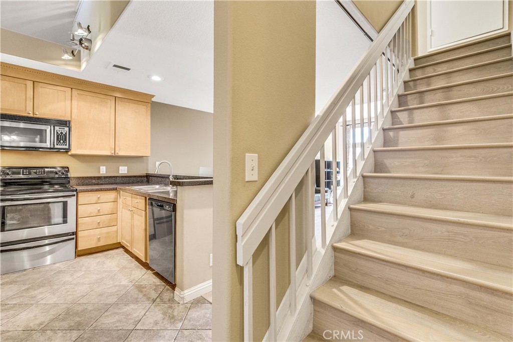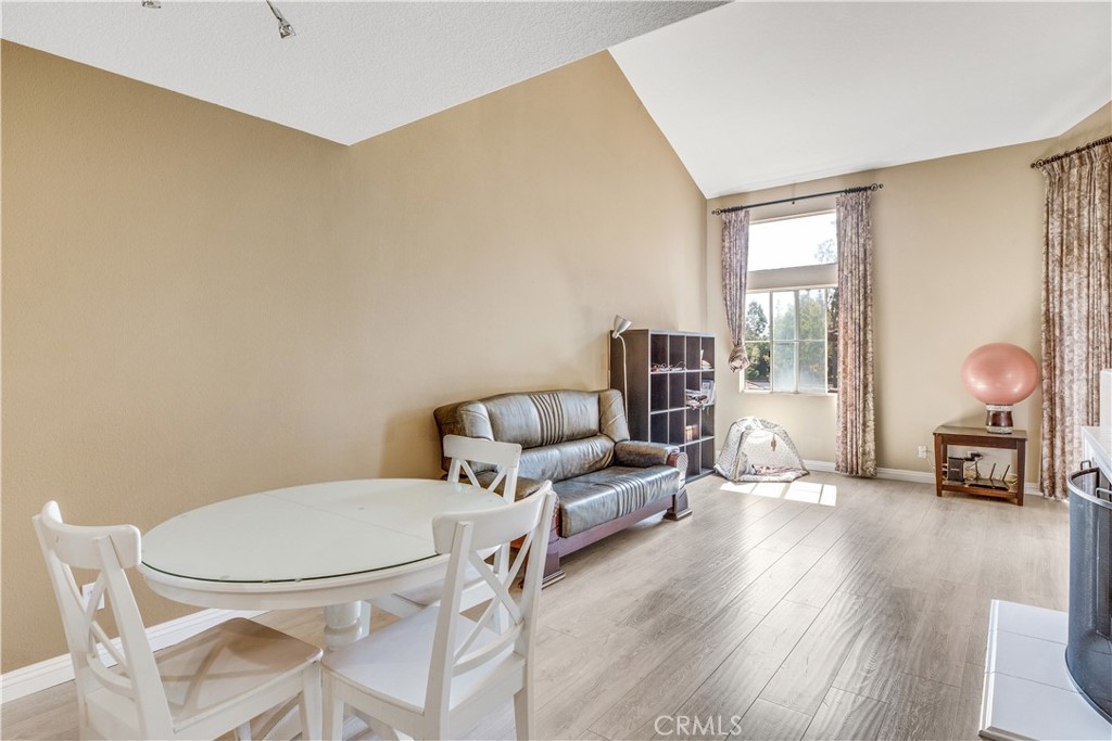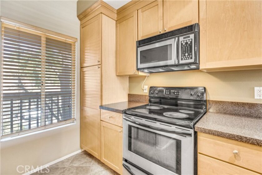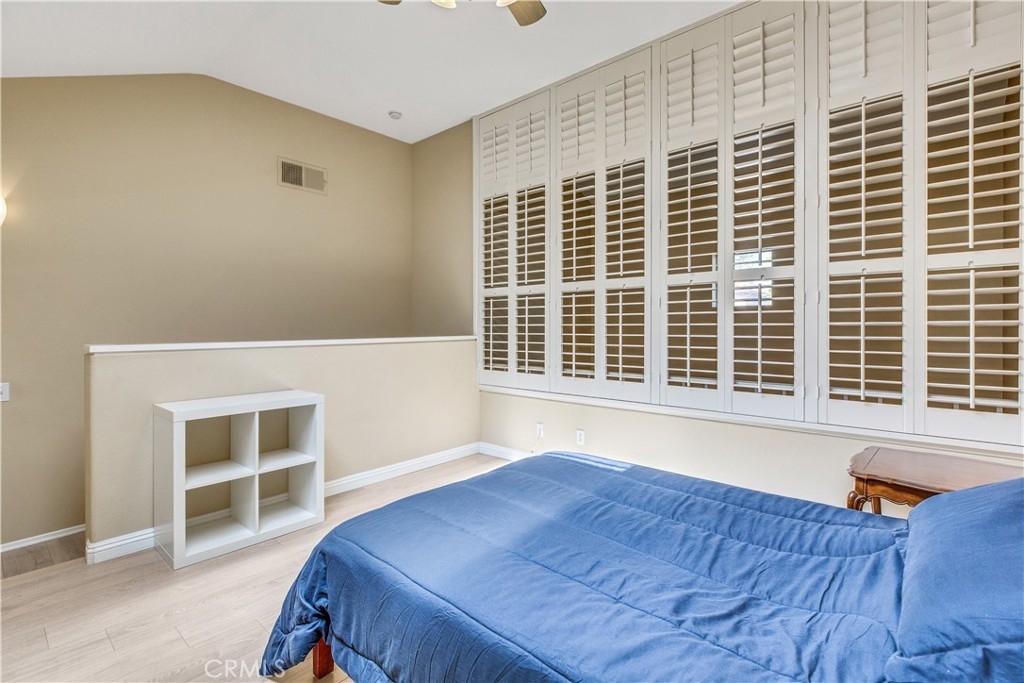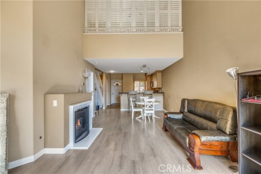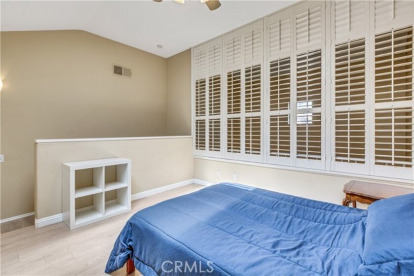 Experience luxury living in Tustin Ranch Rancho Veracruze with this stunning 2-bedroom, 1-bathroom condo. This home is uniquely designed with a loft that has been turned into a spacious bedroom, complete with a small closet, adding versatility and style to the living space. As you enter the home, you'll be greeted by the spacious living room with its soaring cathedral ceilings and beautiful laminate flooring. The first bedroom is located on the lower level, providing added privacy and convenience for family members. Upstairs, you'll find the loft that has been converted into a spacious bedroom, complete with a small closet, perfect for a home office or additional guest room. The bathroom has been recently updated with modern fixtures and finishes, adding to the contemporary feel of the home. The gourmet kitchen is a chef's dream, featuring brand new stainless steel appliances, including a refrigerator and dishwasher, and plenty of counter and storage space. Other recent upgrades include new doors and shutters, as well as central air conditioning for your comfort. This condo also boasts in-house laundry, making everyday chores a breeze. Located in a peaceful and quiet community with Pools and SPA and GYM room, this property provides the perfect sanctuary from the hustle and bustle of everyday life. Enjoy easy access to the nearby Irvine/Tustin marketplace and the 5 freeway, making commuting and shopping a breeze. Whether you're a first-time buyer or looking to downsize, this beautiful condo is perfect for anyone seeking comfort, convenience, and style. Don't miss out on this incredible opportunity to own your dream home. Contact us today to schedule a viewing!