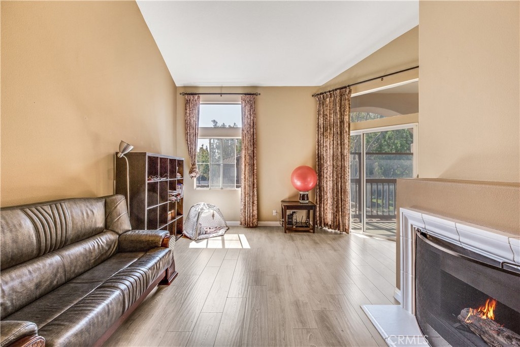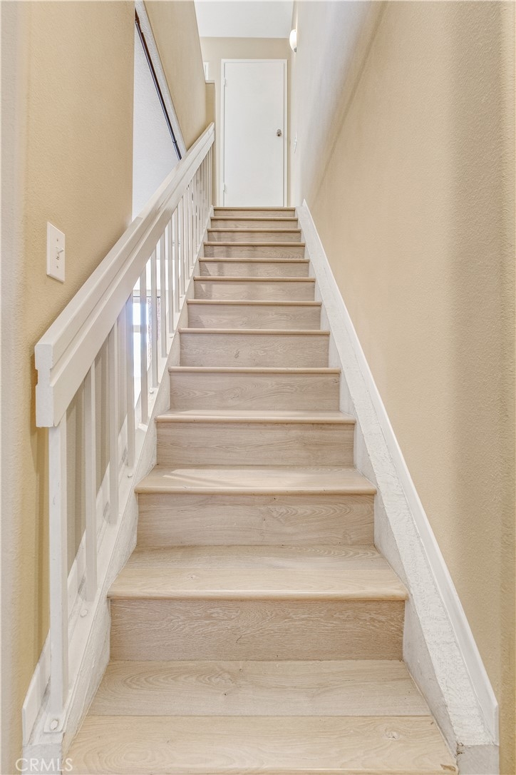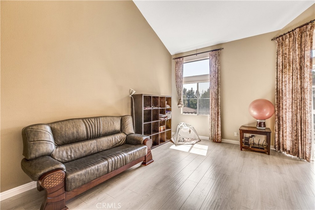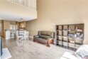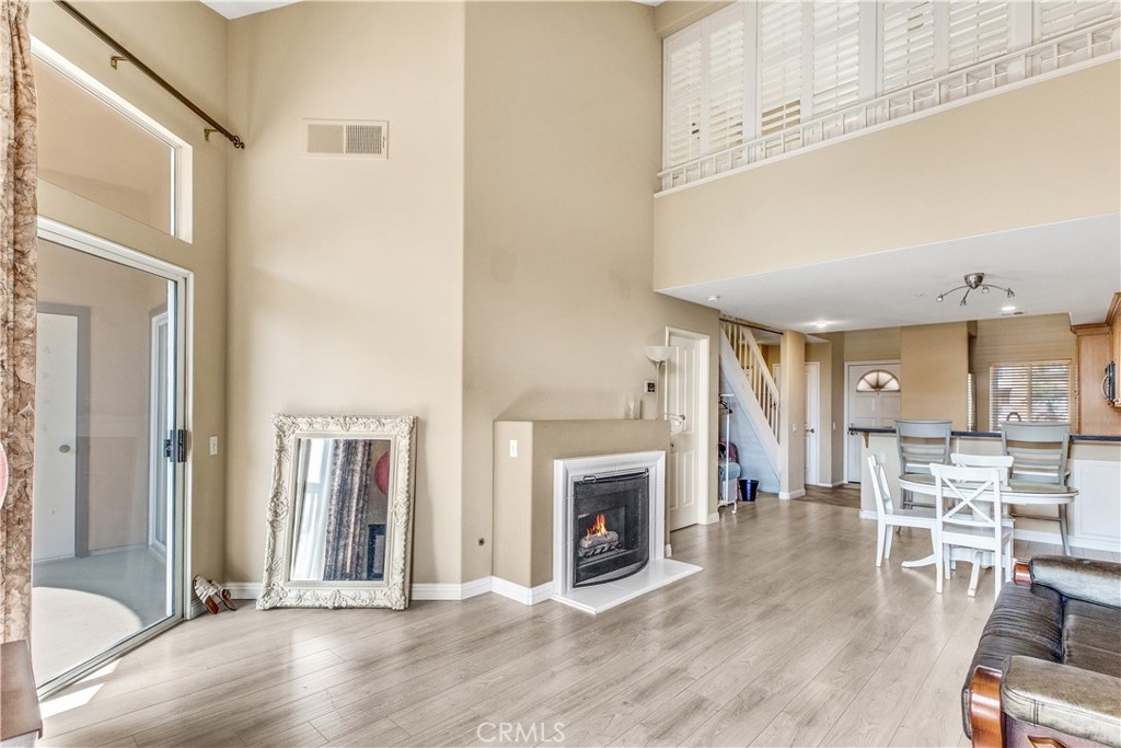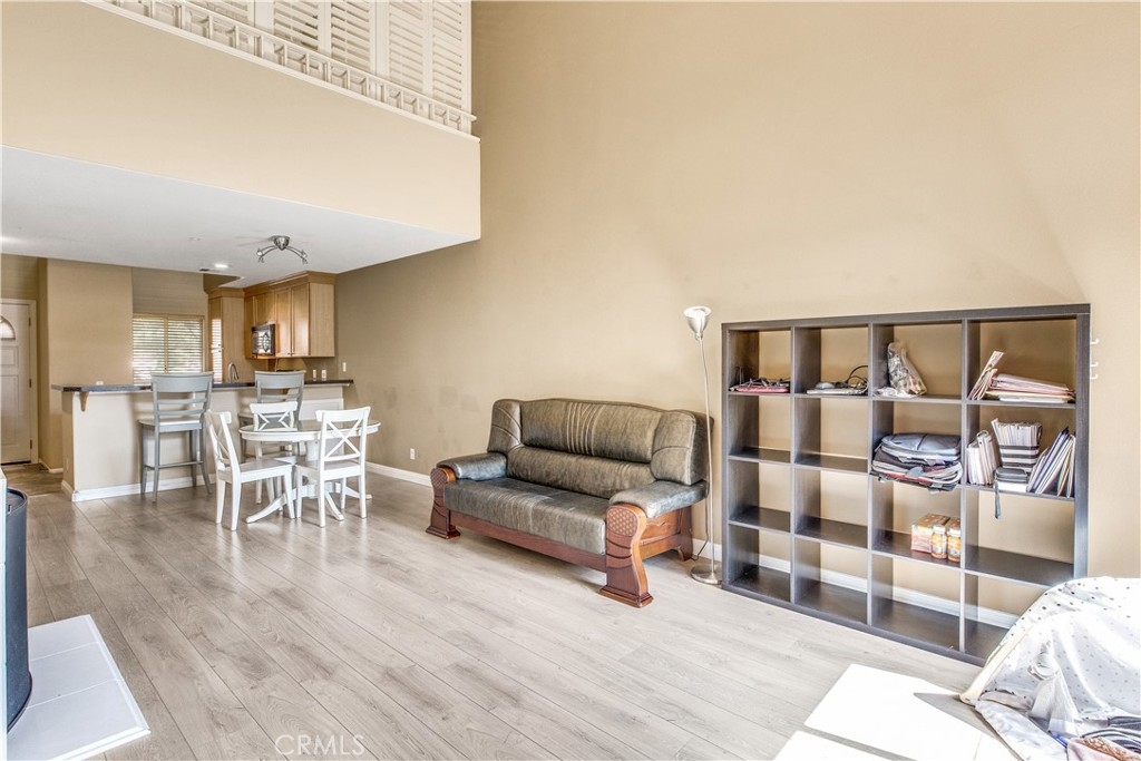 Experience luxury living in Tustin Ranch Rancho Veracruze with this stunning 2-bedroom, 1-bathroom condo. This home is uniquely designed with a loft that has been turned into a spacious bedroom, complete with a small closet, adding versatility and style to the living space. As you enter the home, you'll be greeted by the spacious living room with its soaring cathedral ceilings and beautiful laminate flooring. The first bedroom is located on the lower level, providing added privacy and convenience for family members. Upstairs, you'll find the loft that has been converted into a spacious bedroom, complete with a small closet, perfect for a home office or additional guest room. The bathroom has been recently updated with modern fixtures and finishes, adding to the contemporary feel of the home. The gourmet kitchen is a chef's dream, featuring brand new stainless steel appliances, including a refrigerator and dishwasher, and plenty of counter and storage space. Other recent upgrades include new doors and shutters, as well as central air conditioning for your comfort. This condo also boasts in-house laundry, making everyday chores a breeze. Located in a peaceful and quiet community with Pools and SPA and GYM room, this property provides the perfect sanctuary from the hustle and bustle of everyday life. Enjoy easy access to the nearby Irvine/Tustin marketplace and the 5 freeway, making commuting and shopping a breeze. Whether you're a first-time buyer or looking to downsize, this beautiful condo is perfect for anyone seeking comfort, convenience, and style. Don't miss out on this incredible opportunity to own your dream home. Contact us today to schedule a viewing!