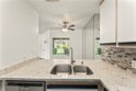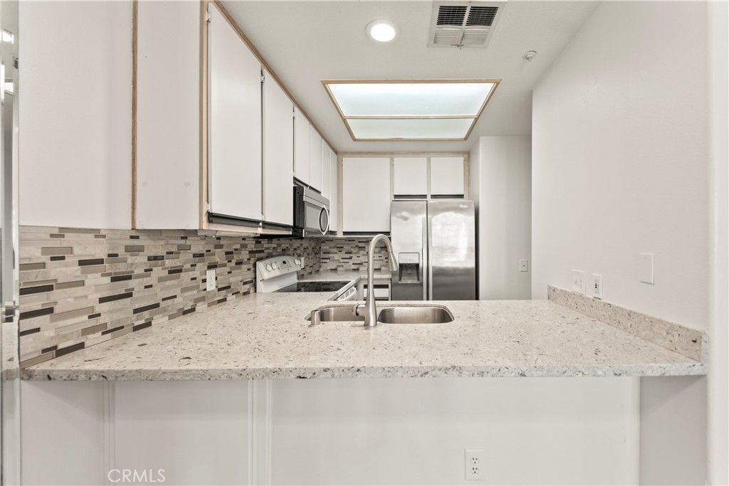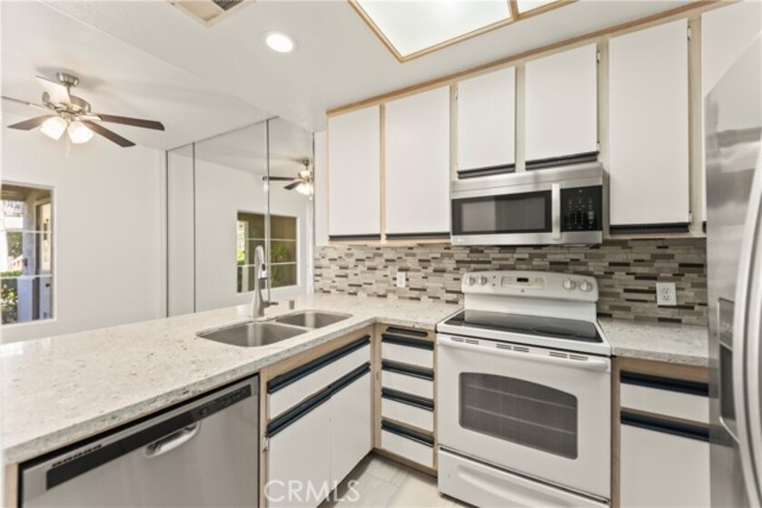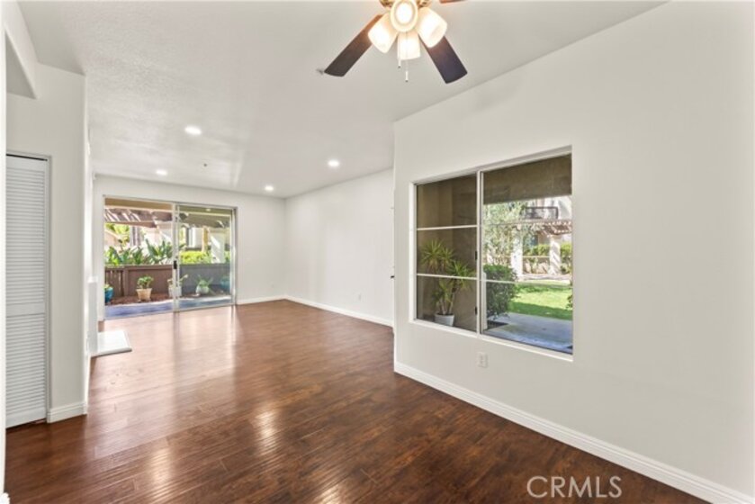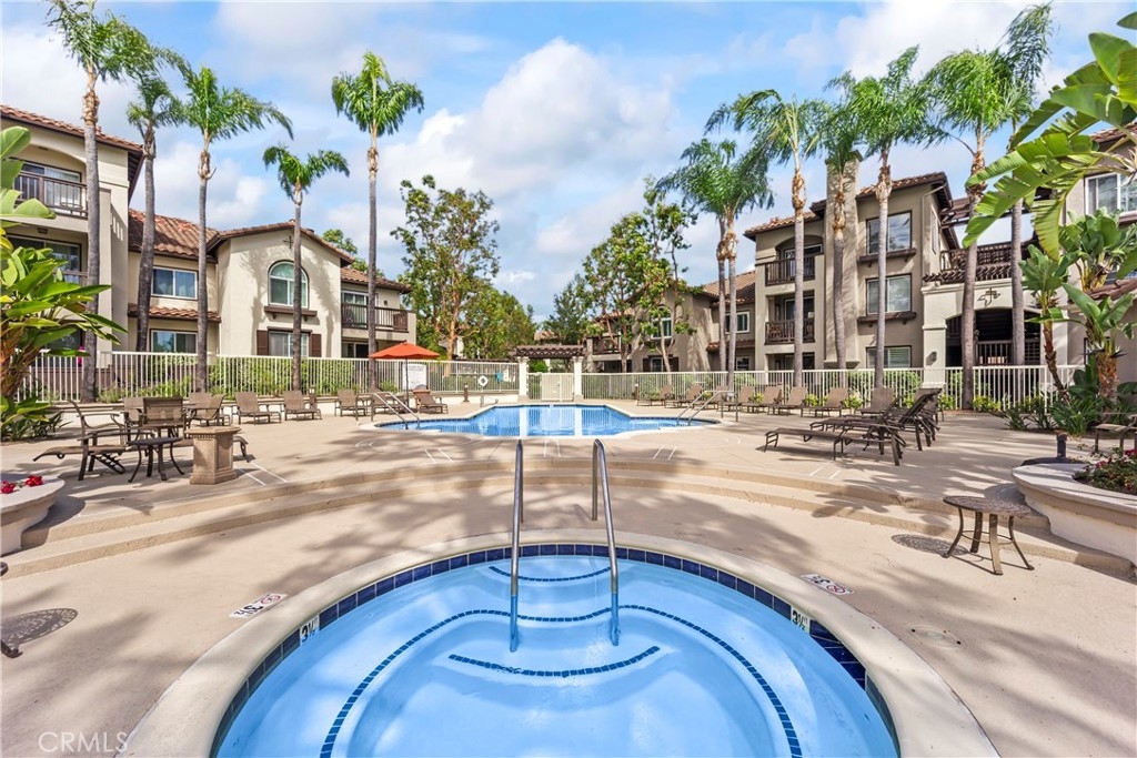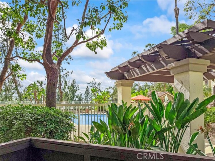 End Unit in Rancho Veracruz – Elegant 2 Bed / 2 Bath Condo in Tustin Welcome to this beautifully refined 2-bedroom, 2-bath condominium offering 1,047 sq ft of thoughtfully designed living space in the highly coveted Rancho Veracruz community. Positioned as a desirable first-floor end unit, this home provides enhanced privacy, abundant natural light, and effortless access to the nearby community pool. The open-concept living and dining area features rich hardwood flooring, fresh designer paint throughout, and a charming fireplace that creates a warm and inviting atmosphere—ideal for both everyday living and entertaining. The well-appointed kitchen includes a refrigerator, microwave, dishwasher, and electric range, ensuring convenience and functionality. An in-unit washer and dryer further elevate the ease of daily living. Additional highlights include central heating and air conditioning, a private patio perfect for morning coffee or evening relaxation, and a two-car garage located directly adjacent to the unit, complemented by ample guest parking. * Breathtaking pool views and easy access to the Tustin Ranch golf course * Beautifully upgraded bathrooms featuring new flooring, designer lighting, and elegant vanity mirrors * Gourmet kitchen with a newly redesigned and remodeled countertop, replacing the original split-level tile finish * Four sophisticated ceiling light fixtures that elevate the ambiance throughout * Rare, oversized two-car garage (363 sf) with exceptional depth, offering ample space for storage or additional uses. Residents of Rancho Veracruz enjoy an array of resort-style amenities, including two sparkling swimming pools, relaxing spa areas, a stylish clubhouse, and a fully equipped fitness center. The community is ideally situated next to Tustin Ranch Golf Club and just minutes from The MarketPlace, offering exceptional dining, shopping, and entertainment options. As an added benefit, HOA dues include water and trash services.